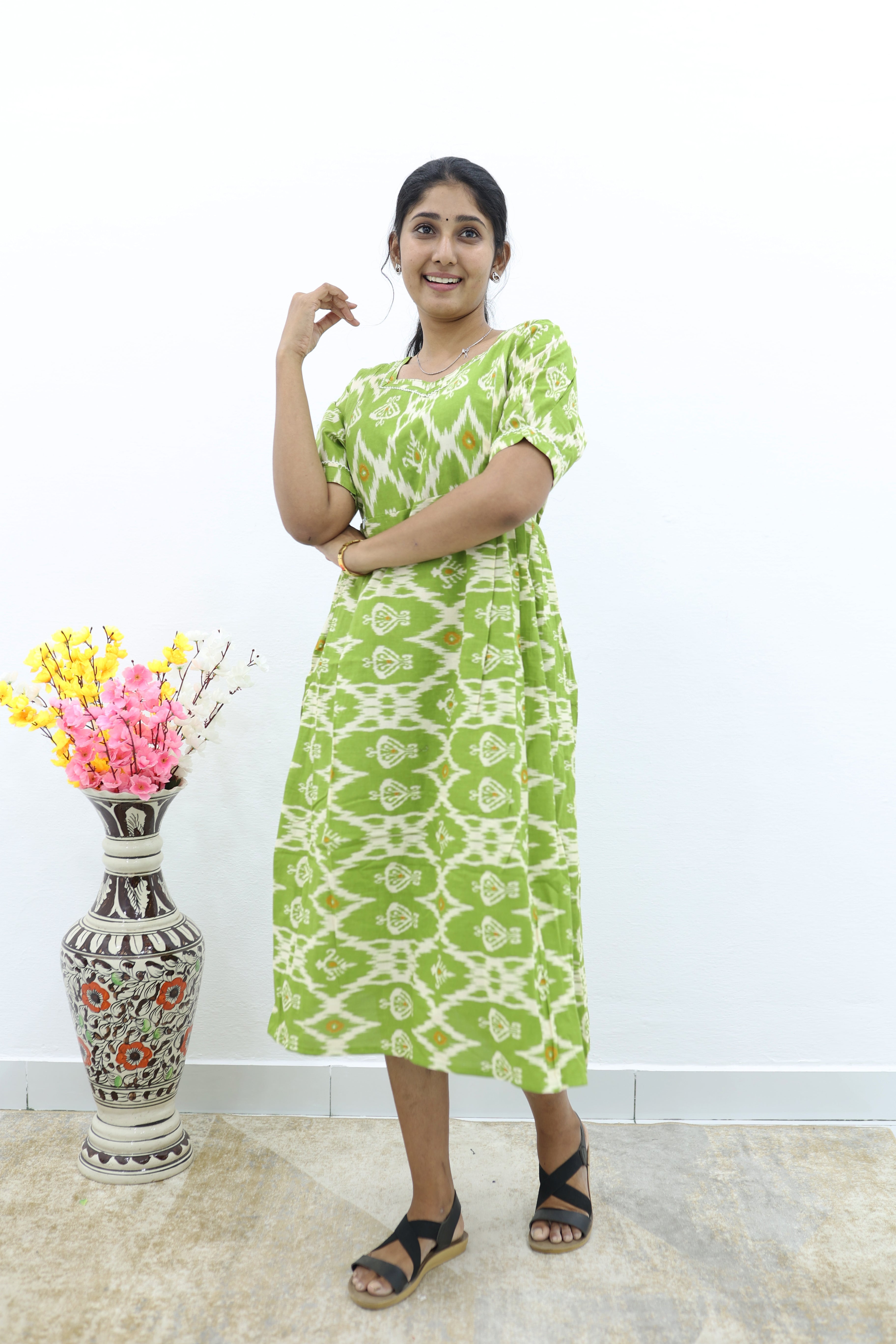 New Mangai Cotton Feeding MAXI Soft & Smooth Cotton | Invisible Vertical Feeding Zipper | Side Pockets | Back Adjustable Tie Rope |Casual & Maternity Wear (JFM)