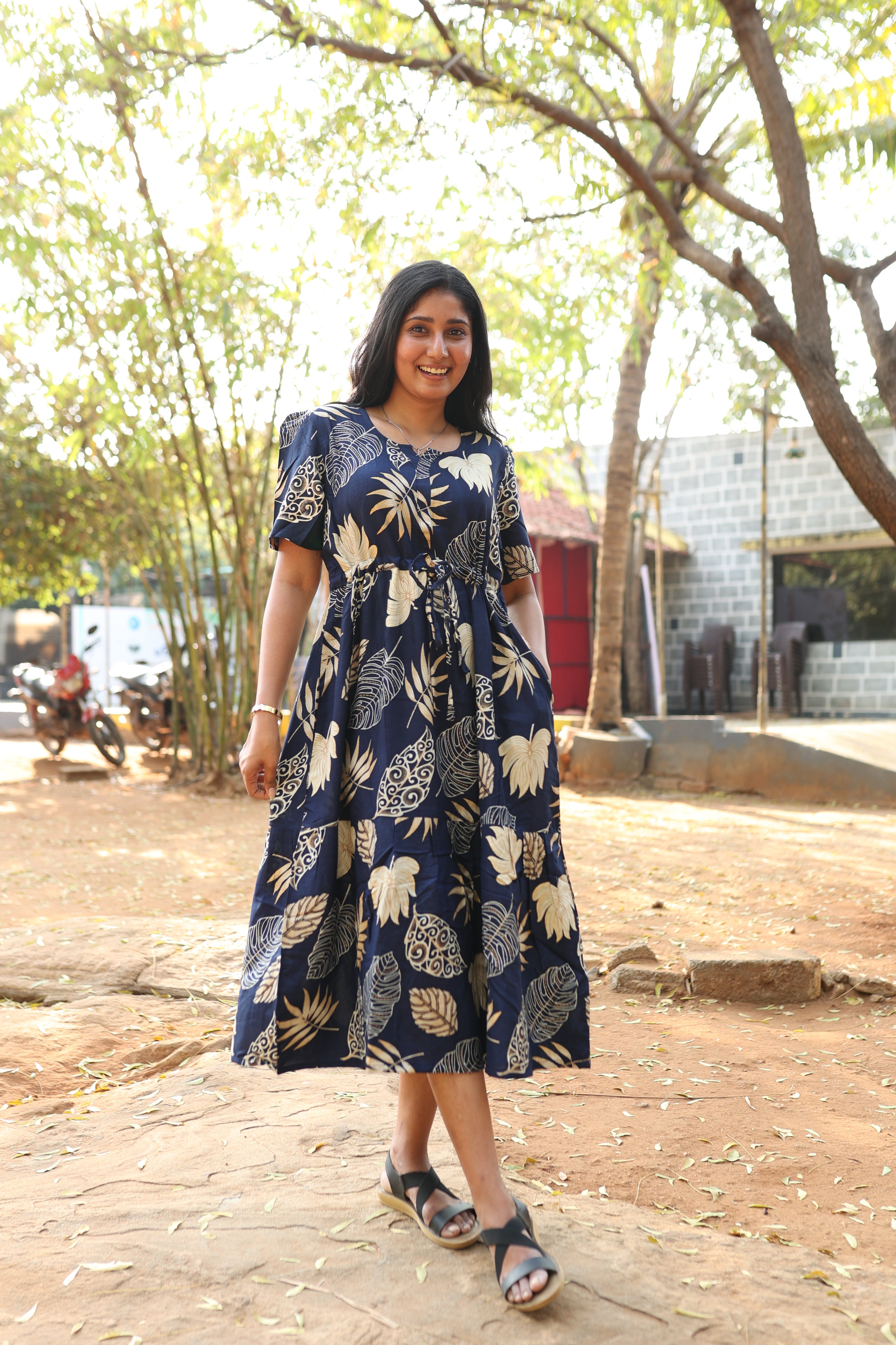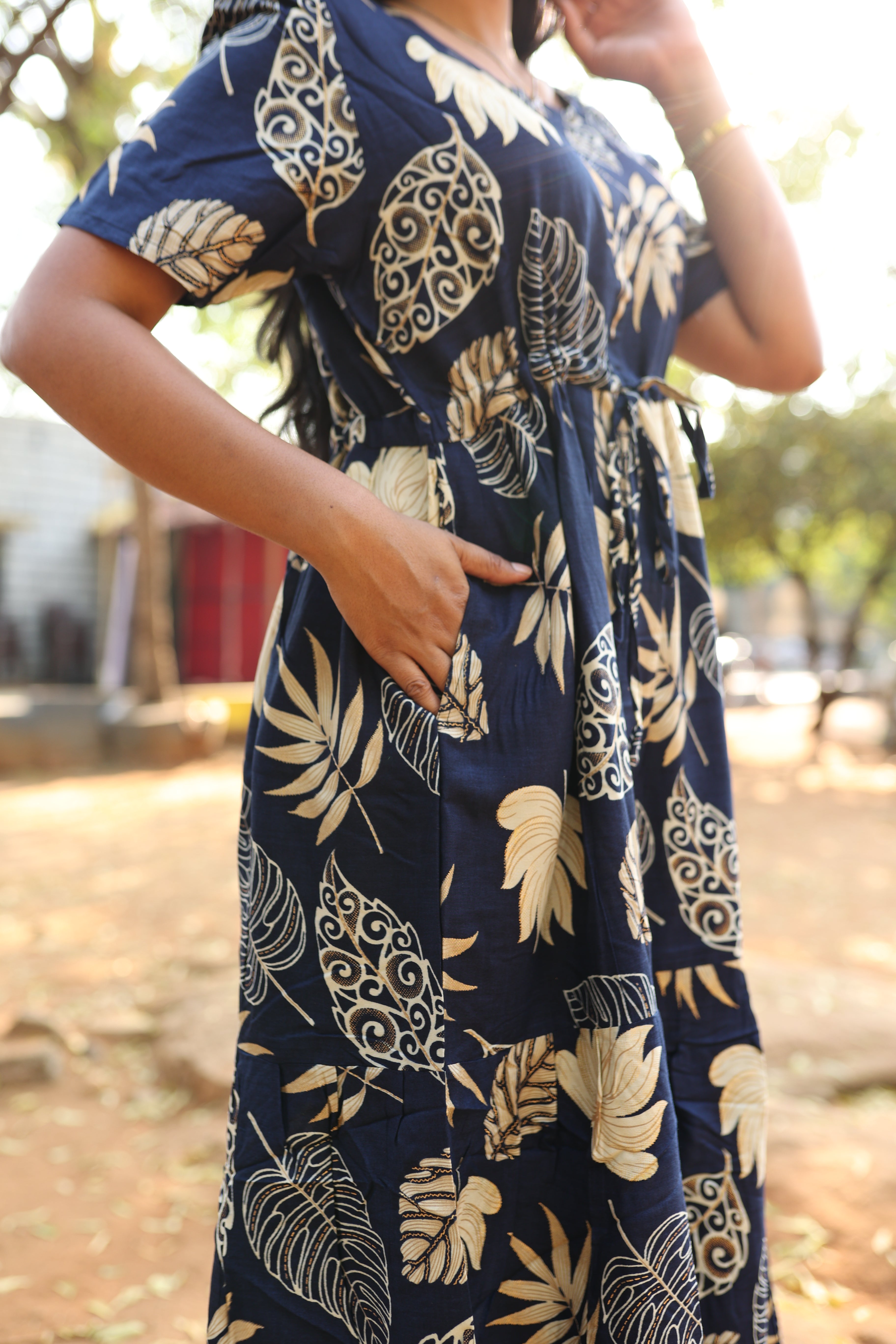 - XX-Large / Navy Bluewith Beige Leaf Print