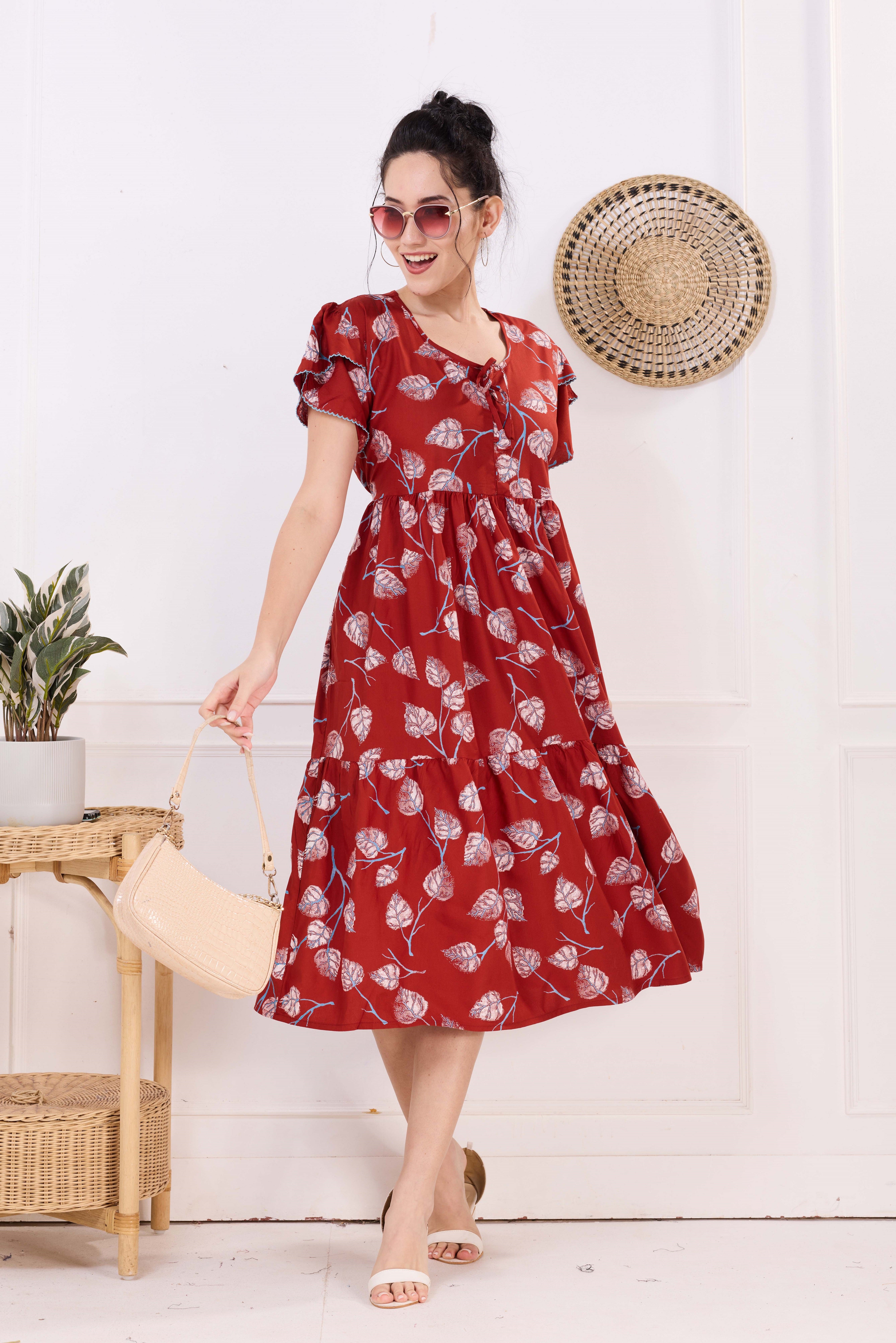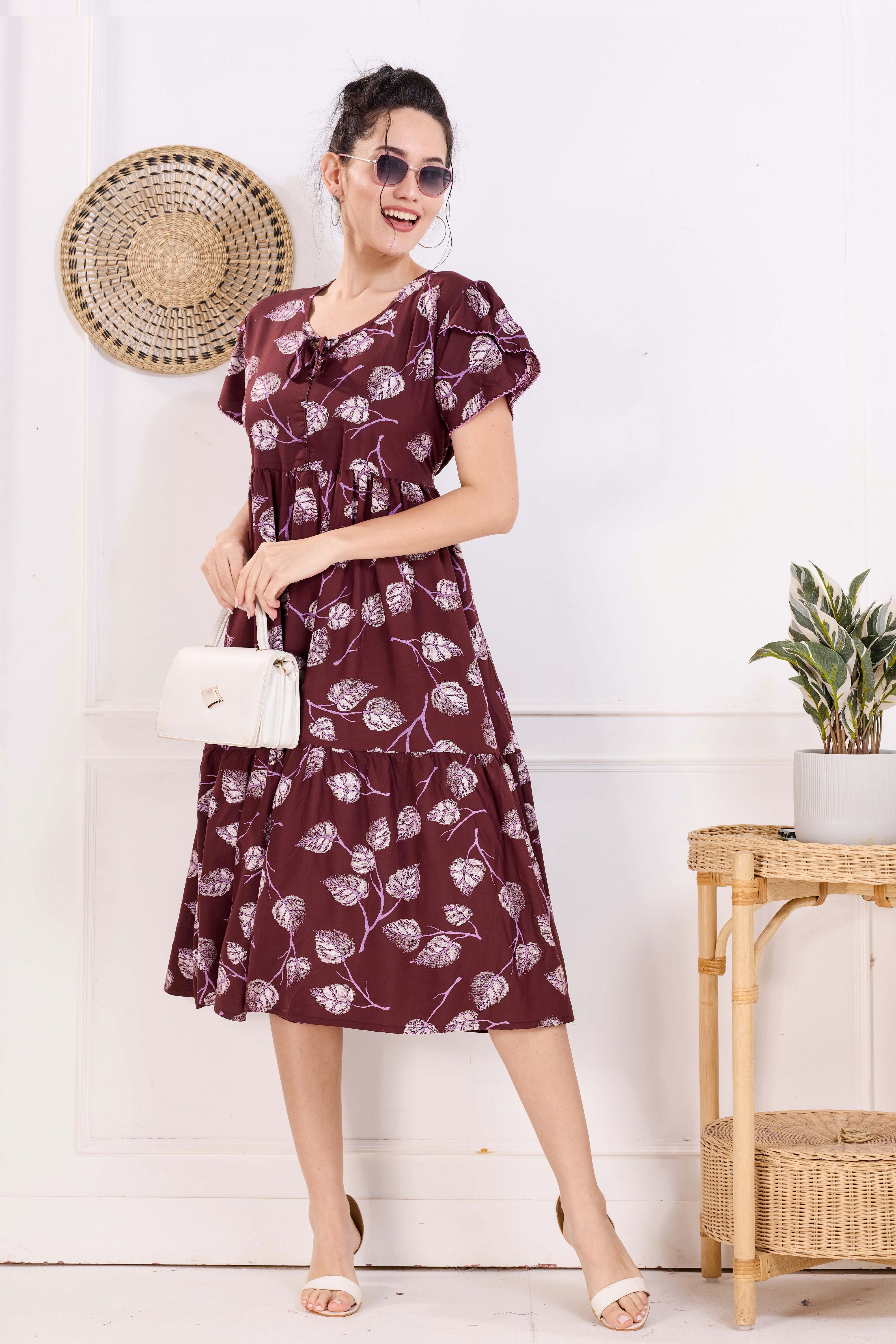 Rayon MAXI FROCK Model Nighties | Fancy Petal Sleeve | Fancy Neck & Side Pocket | Pleated Frock MAXI Style | Trendy Collection's for Stylish Women & Teenage Girl (FSF)