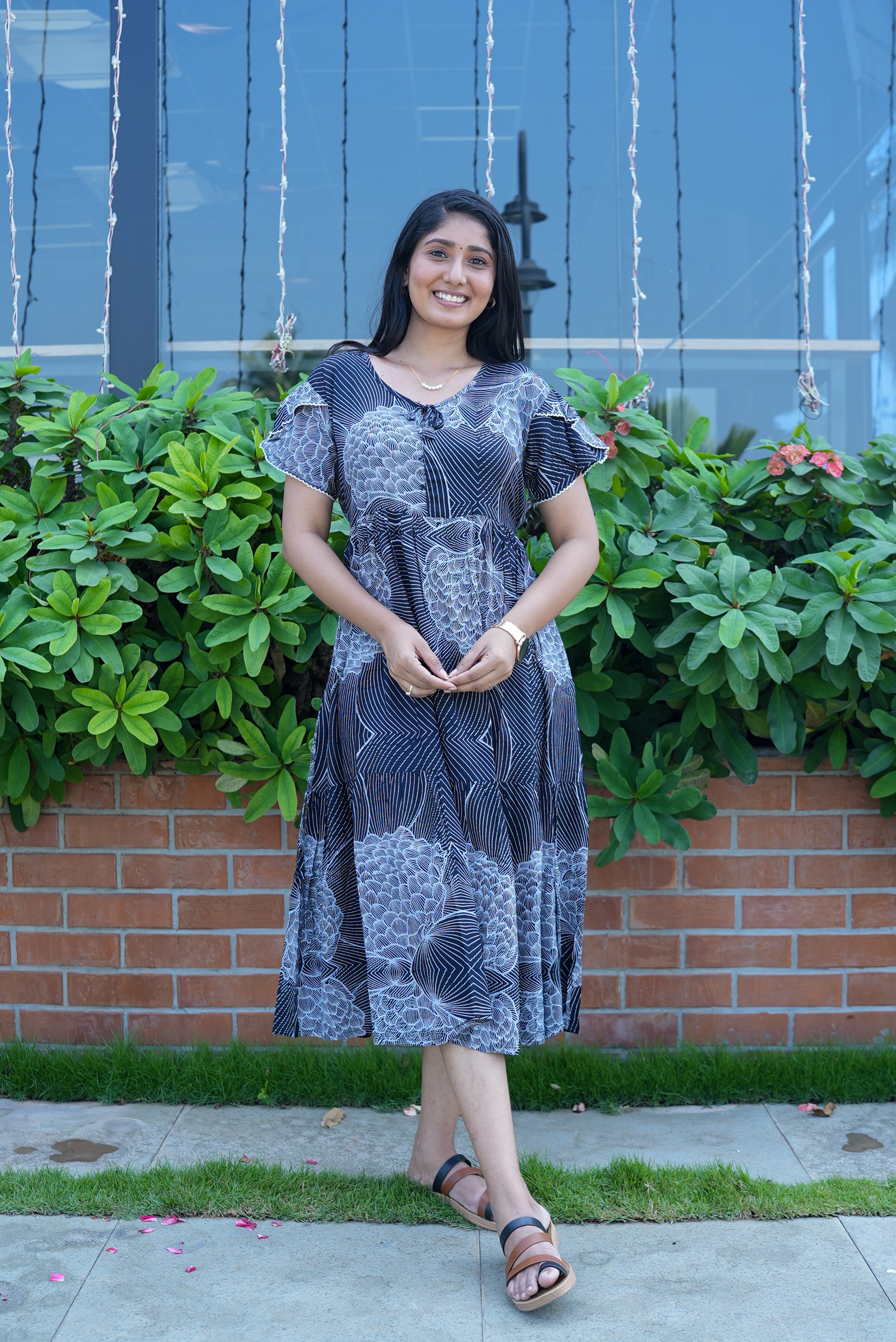 Rayon MAXI FROCK Model Nighties | Fancy Petal Sleeve | Fancy Neck & Side Pocket | Pleated Frock MAXI Style | Trendy Collection's for Stylish Women & Teenage Girl (FSF)