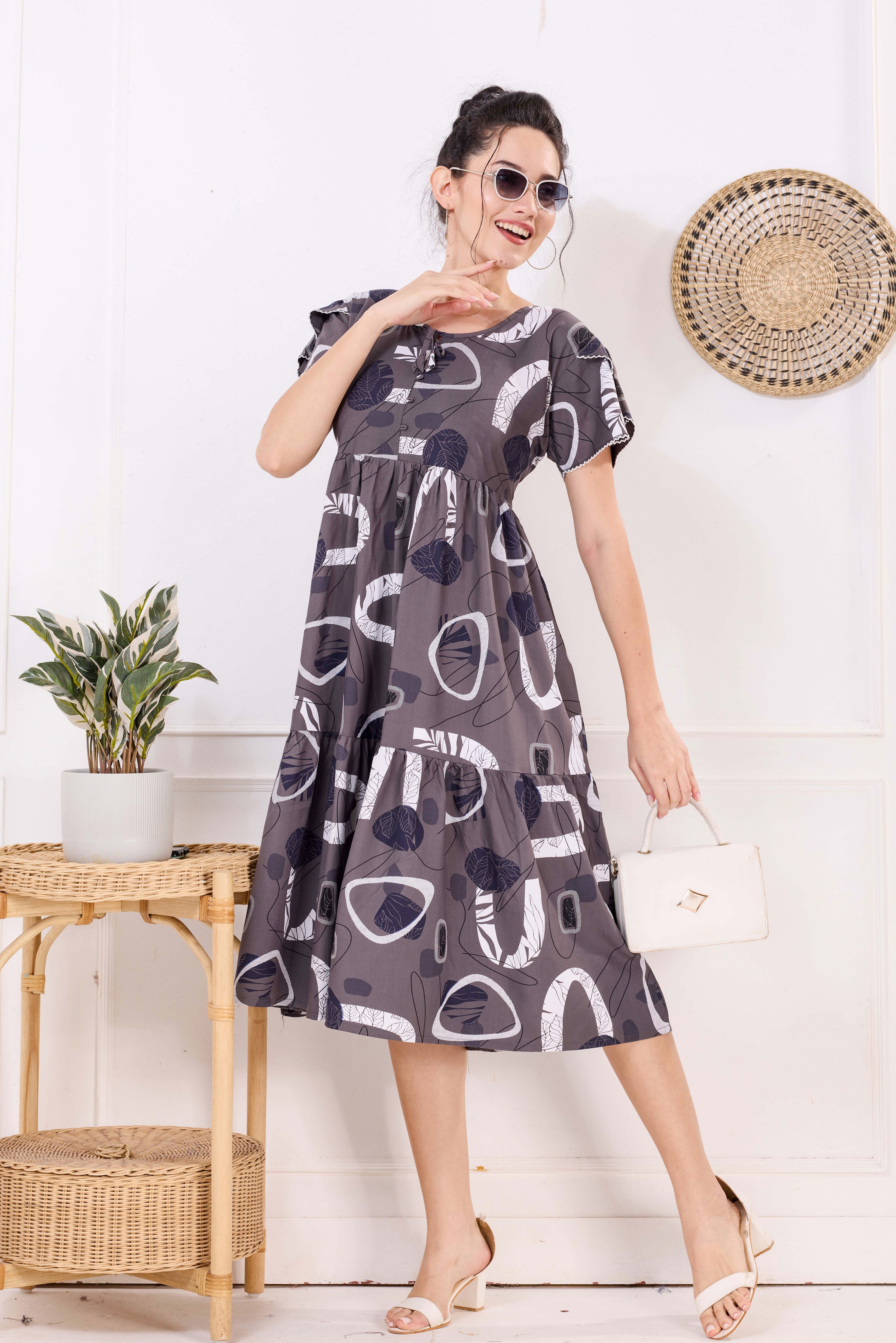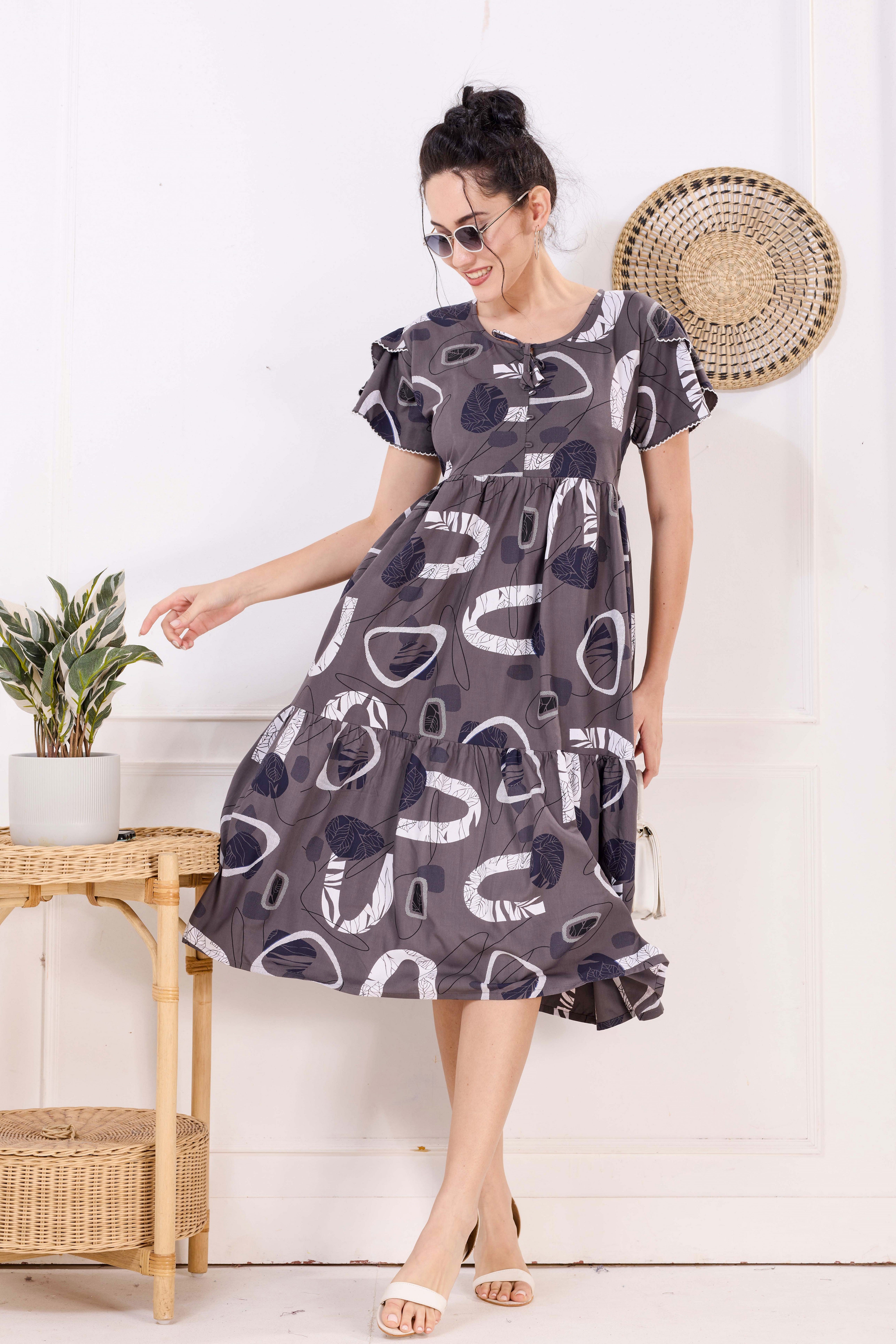 Rayon MAXI FROCK Model Nighties | Fancy Petal Sleeve | Fancy Neck & Side Pocket | Pleated Frock MAXI Style | Trendy Collection's for Stylish Women & Teenage Girl (FSF)