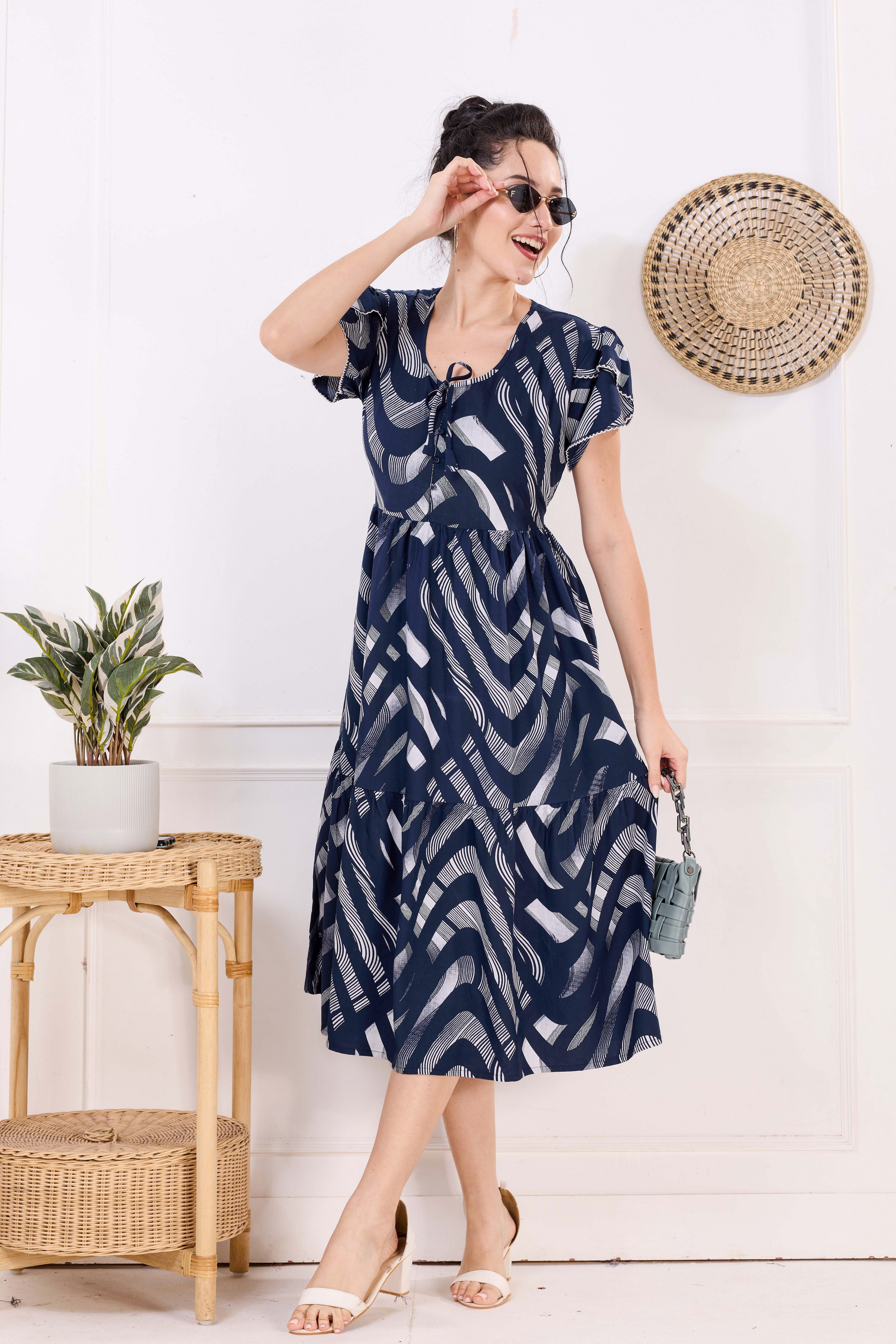 Rayon MAXI FROCK Model Nighties | Fancy Petal Sleeve | Fancy Neck & Side Pocket | Pleated Frock MAXI Style | Trendy Collection's for Stylish Women & Teenage Girl (FSF)