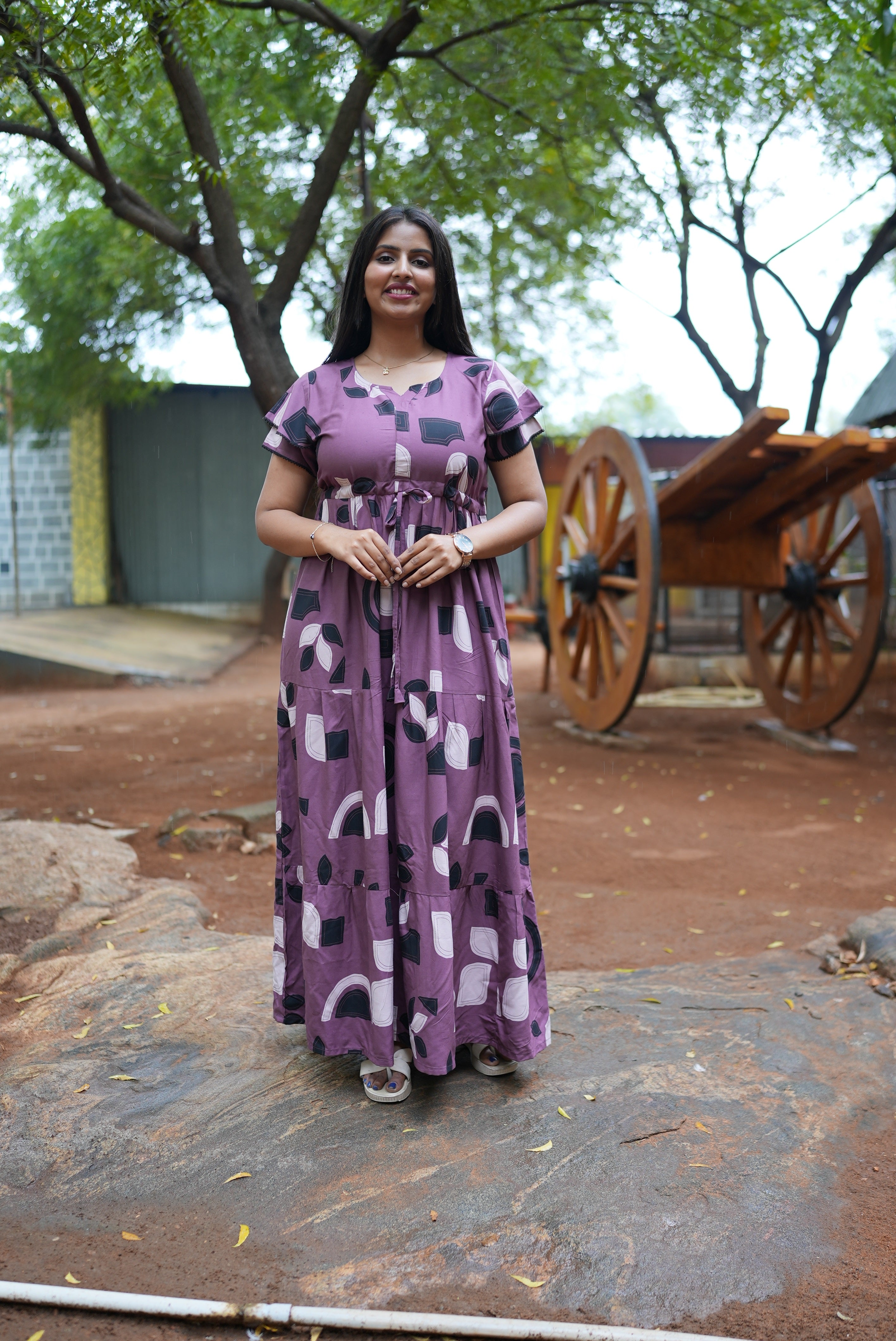 Stylish Arrivals – Rayon Gathering Flared Frock Model Night Gown