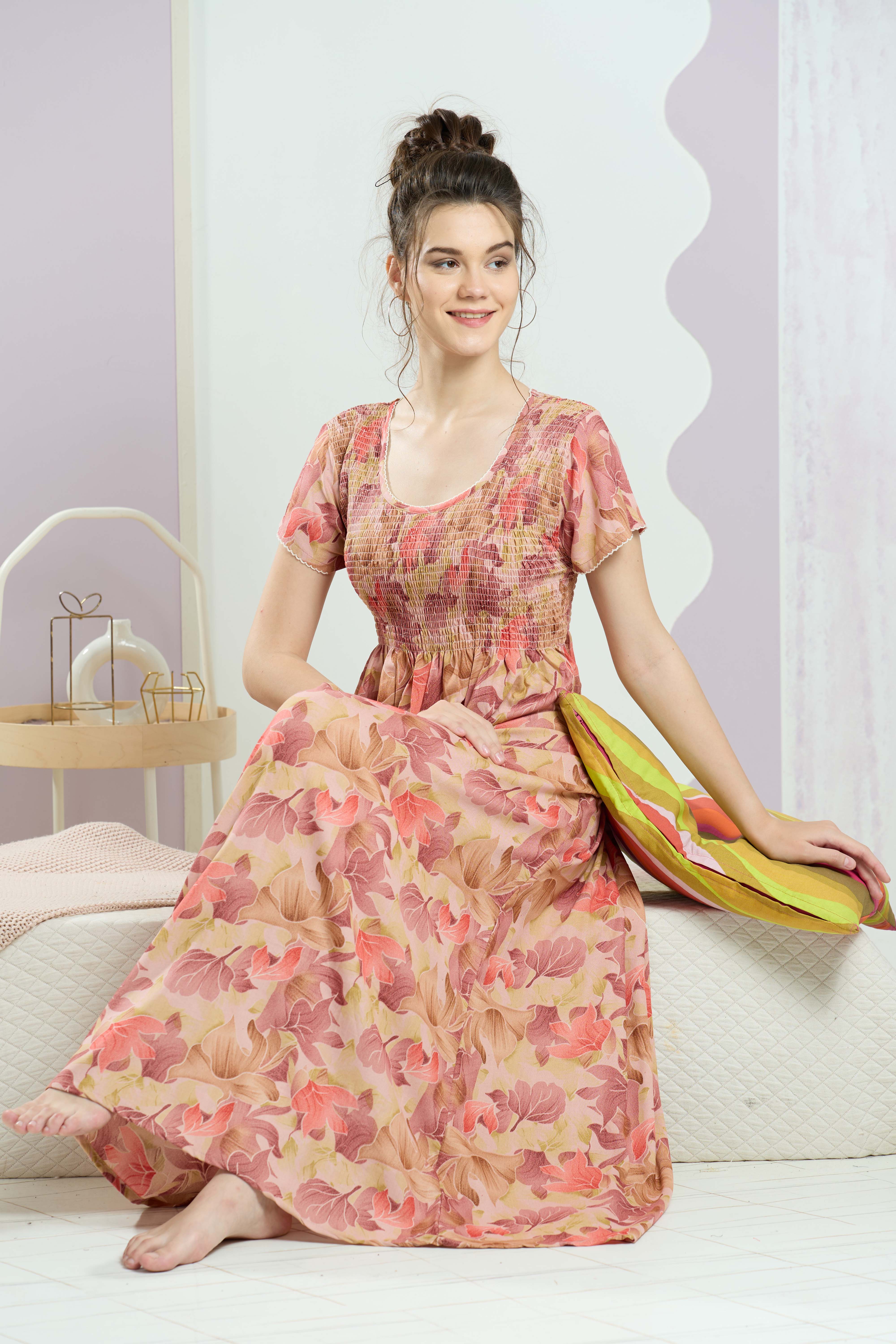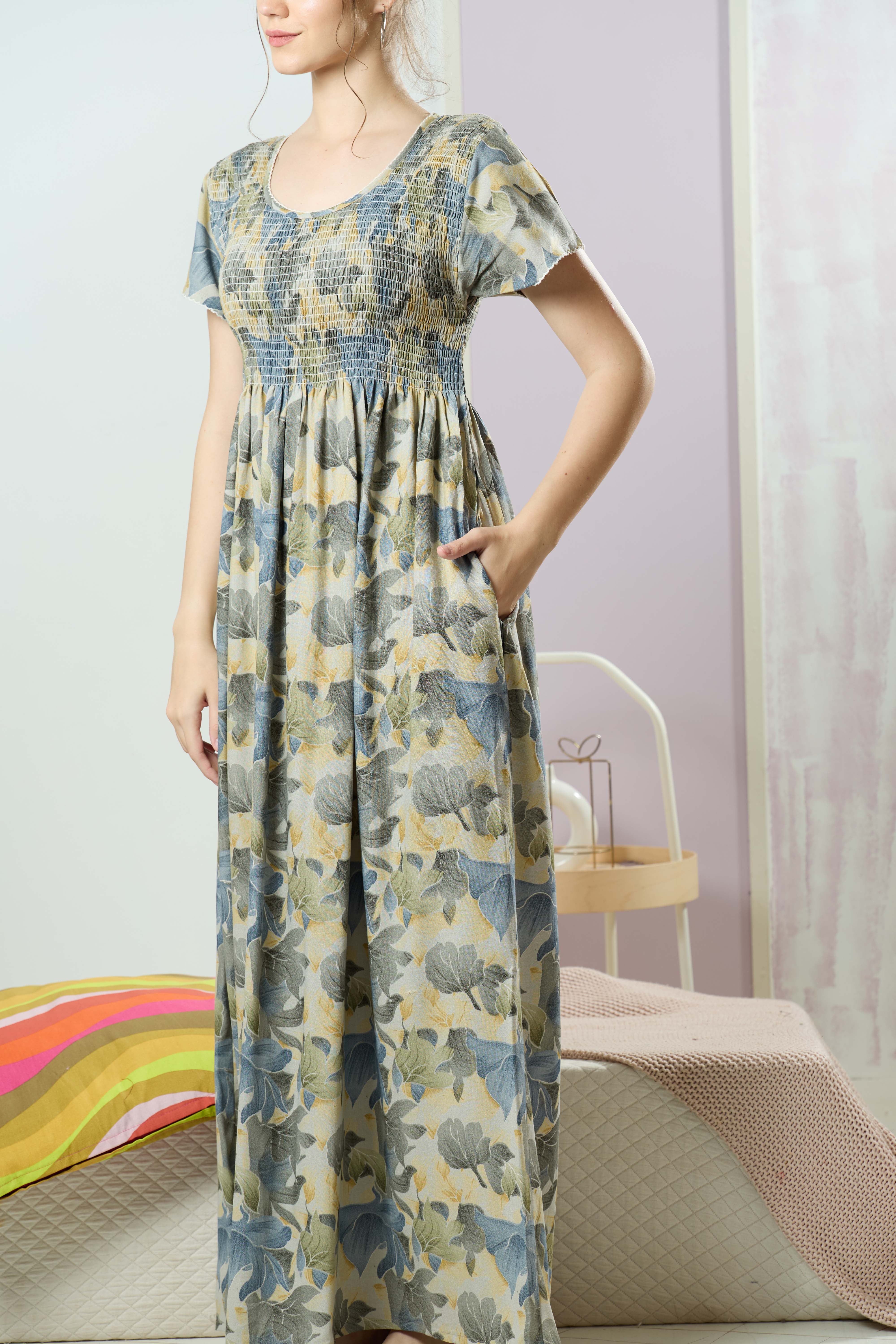 ALPINE Smocking Nighty | Beautiful Pleated Design | Side Pocket | Stylish Nighty for Trendy Women's | Your Perfect Nightwear Collection's (SAP)
