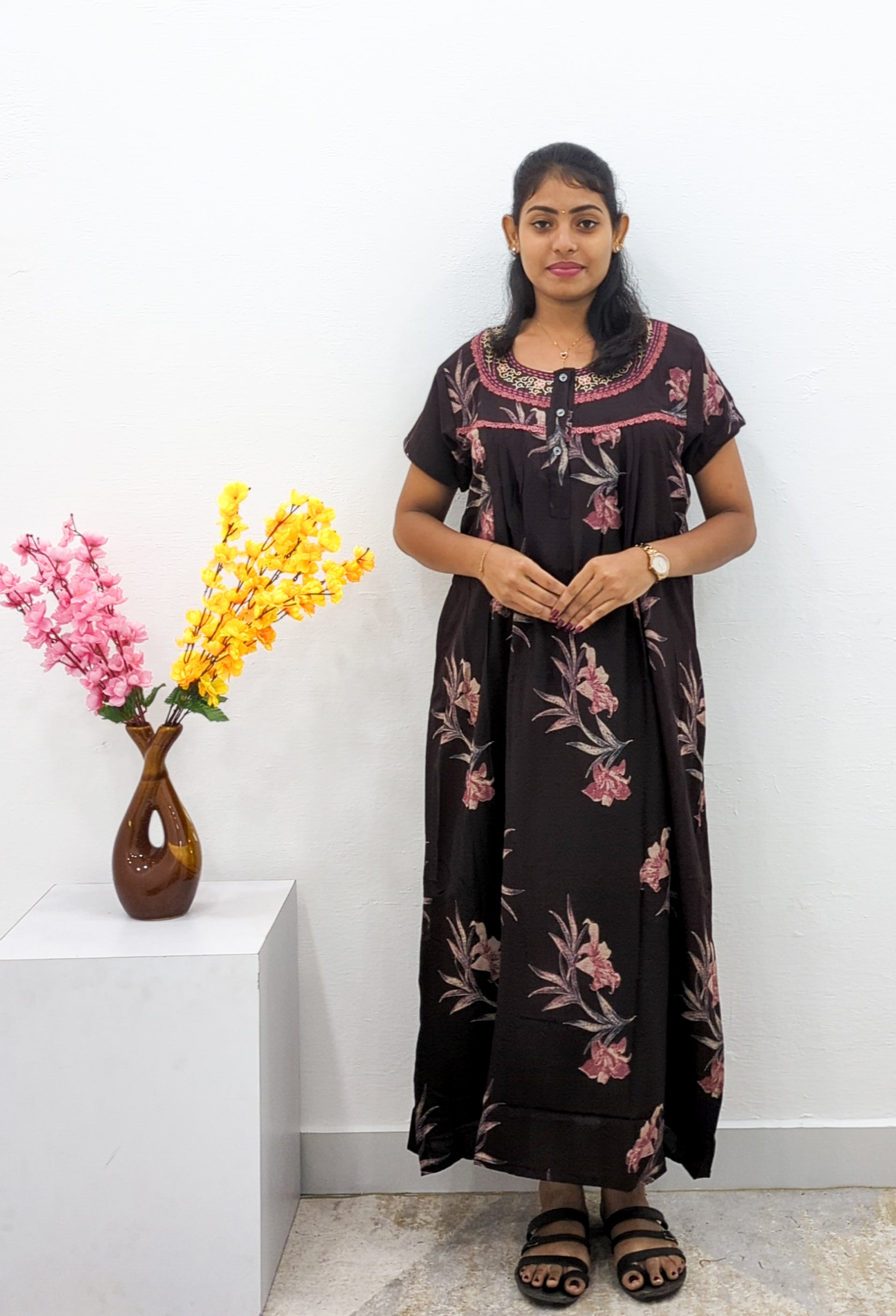 Upgrade your sleepwear collection with this beautiful and comfortable MANGAI cotton nighty. Order yours today!