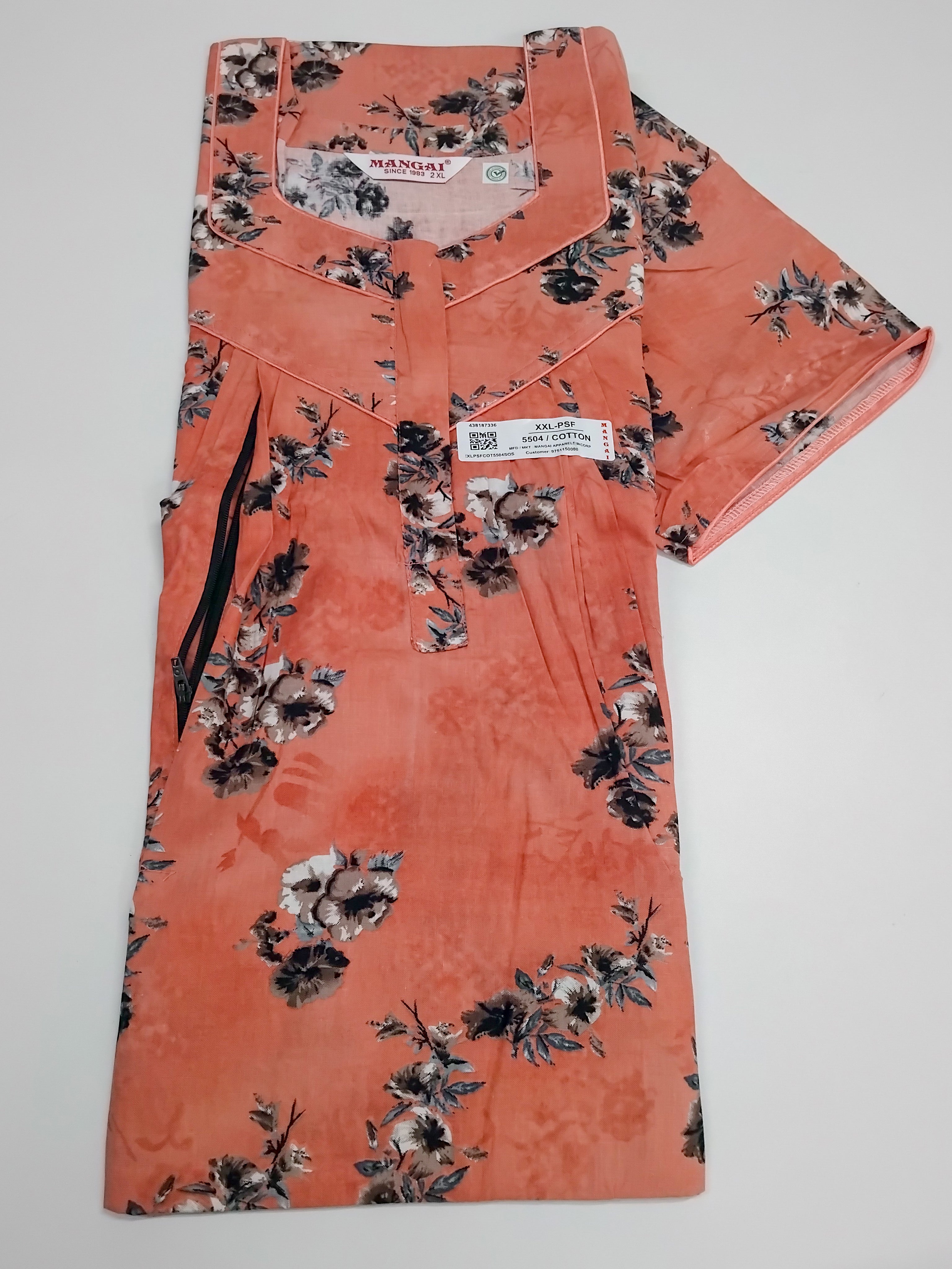 MANGAI Cotton Straight Zip Feeding Nighty |Post Pregnancy | Comfort and Style | Pleated Model | Soft Cotton Feeding Nighties (PSF)