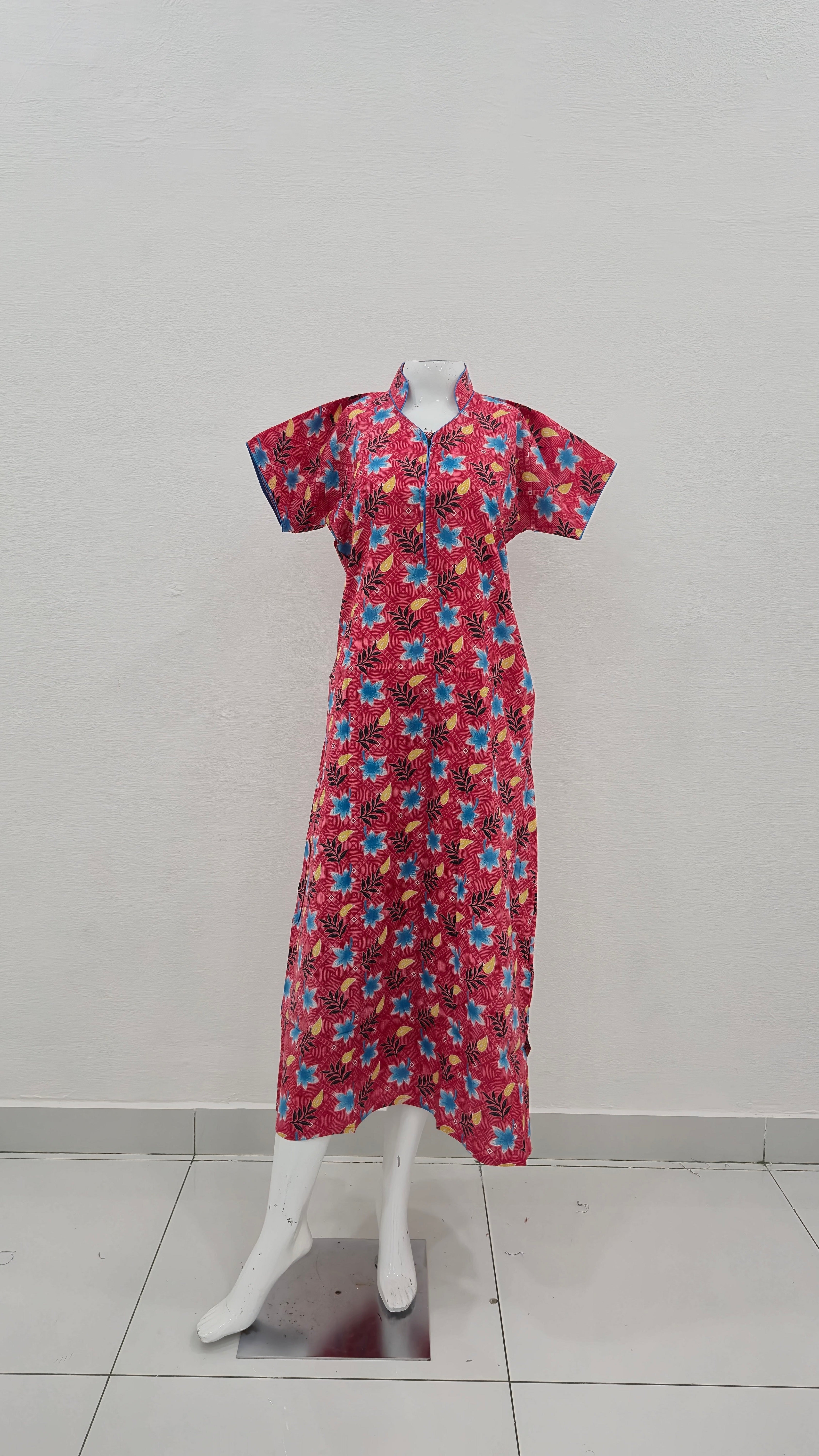 MANGAI Daily Wear Casual Comfort Fit Cotton Printed Nighties | Front open Zipper Model| Slit Open & Neck Collar Comfort Fit Daily Wear Nighties (DRN)