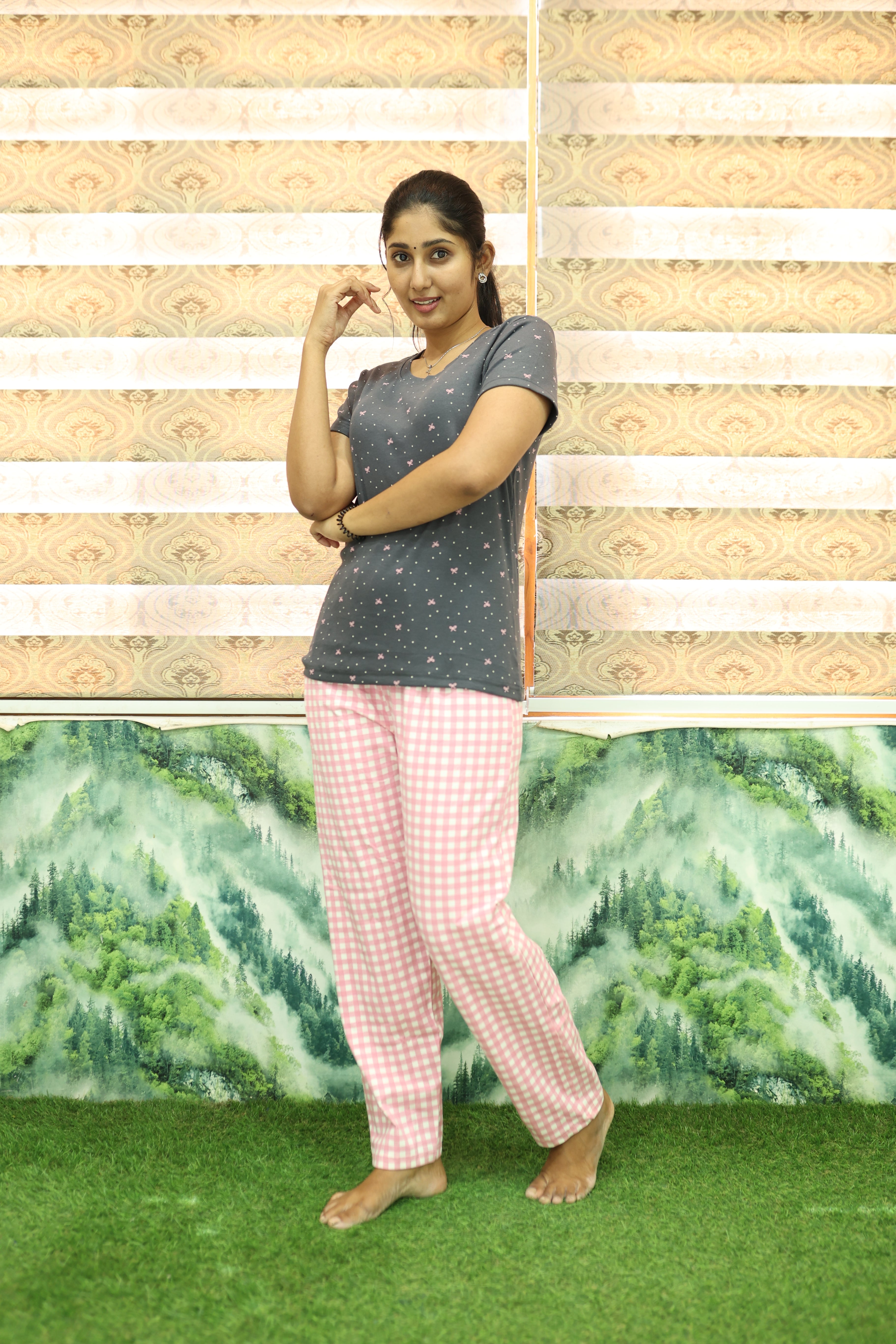 Mangai New Premium Cotton Knitted Pyjama Set Night Suits | Summer Special Arrivals Top & Bottom Set | Soft & Smooth Nightwear a Trendy Women's (PYJAMA SET)