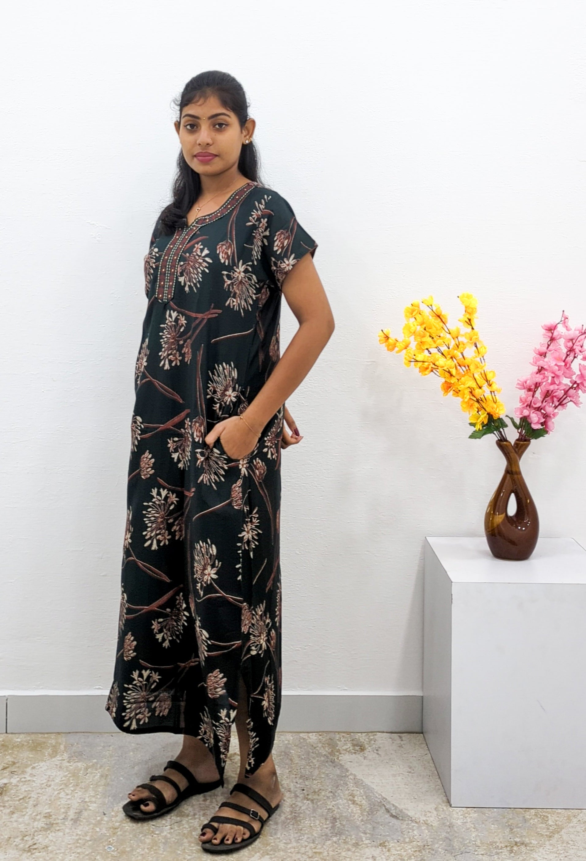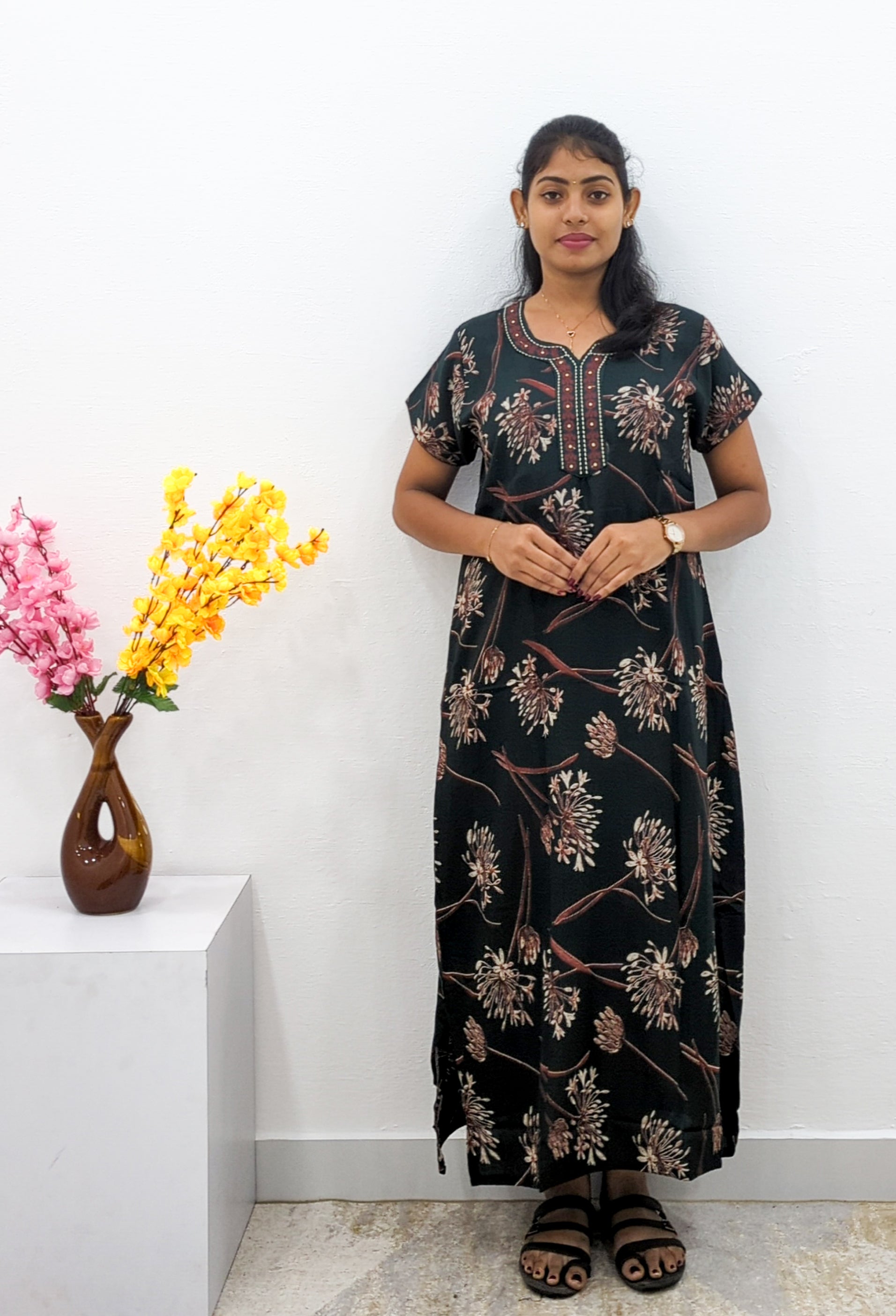 Upgrade your sleepwear collection with this beautiful and comfortable MANGAI cotton nighty. Order yours today!