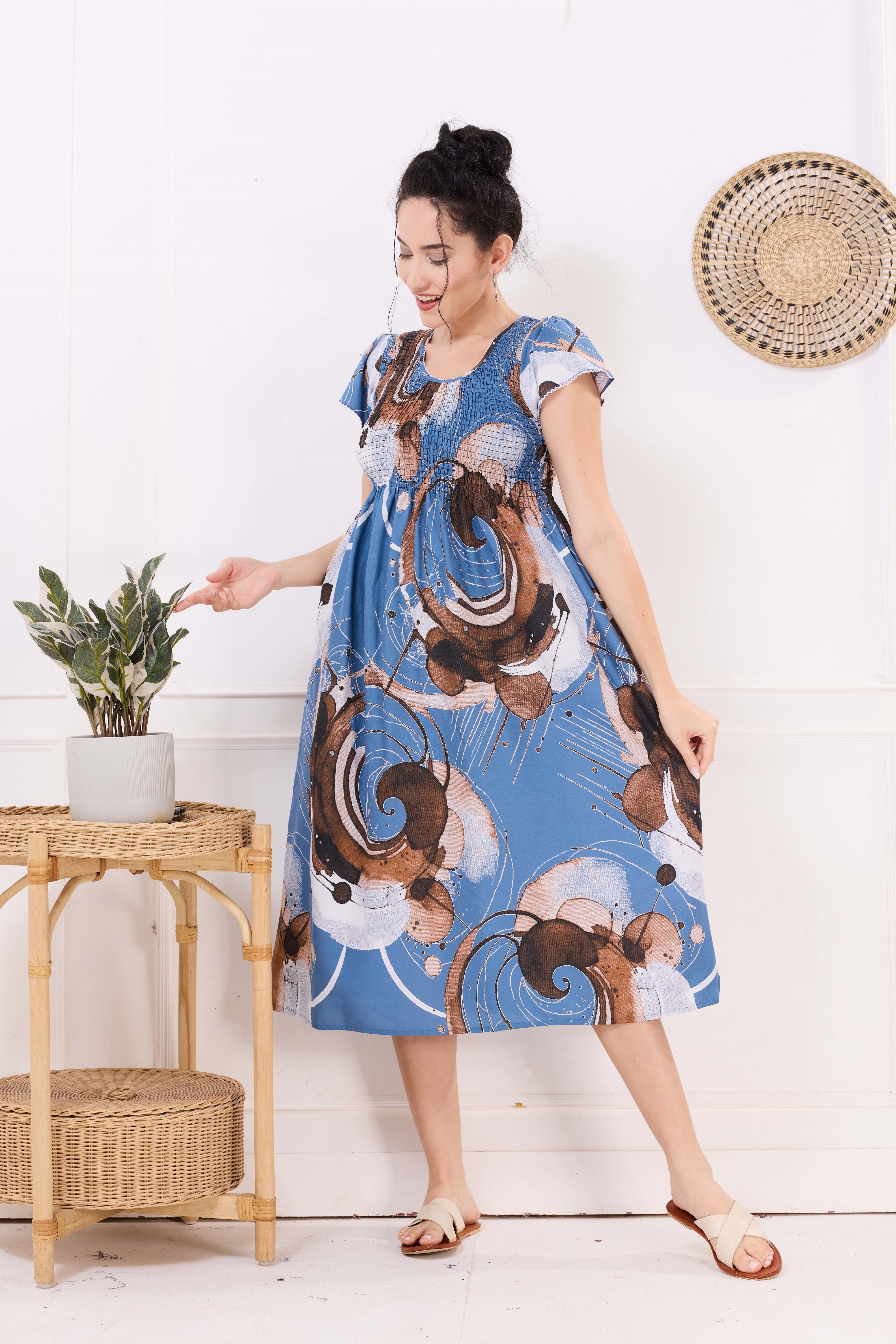 Experience ultimate comfort and style with the MANGAI Premium Rayon MAXI Frock Night Gown. Crafted from soft and smooth rayon fabric, this elegant piece features a stretchable smocking design for a perfect fit. The fancy pleated MAXI frock model adds a touch of flair, while the side pocket offers practicality. Designed with a round neck for timeless charm, this gown is ideal for stylish women who love both comfort and fashion.