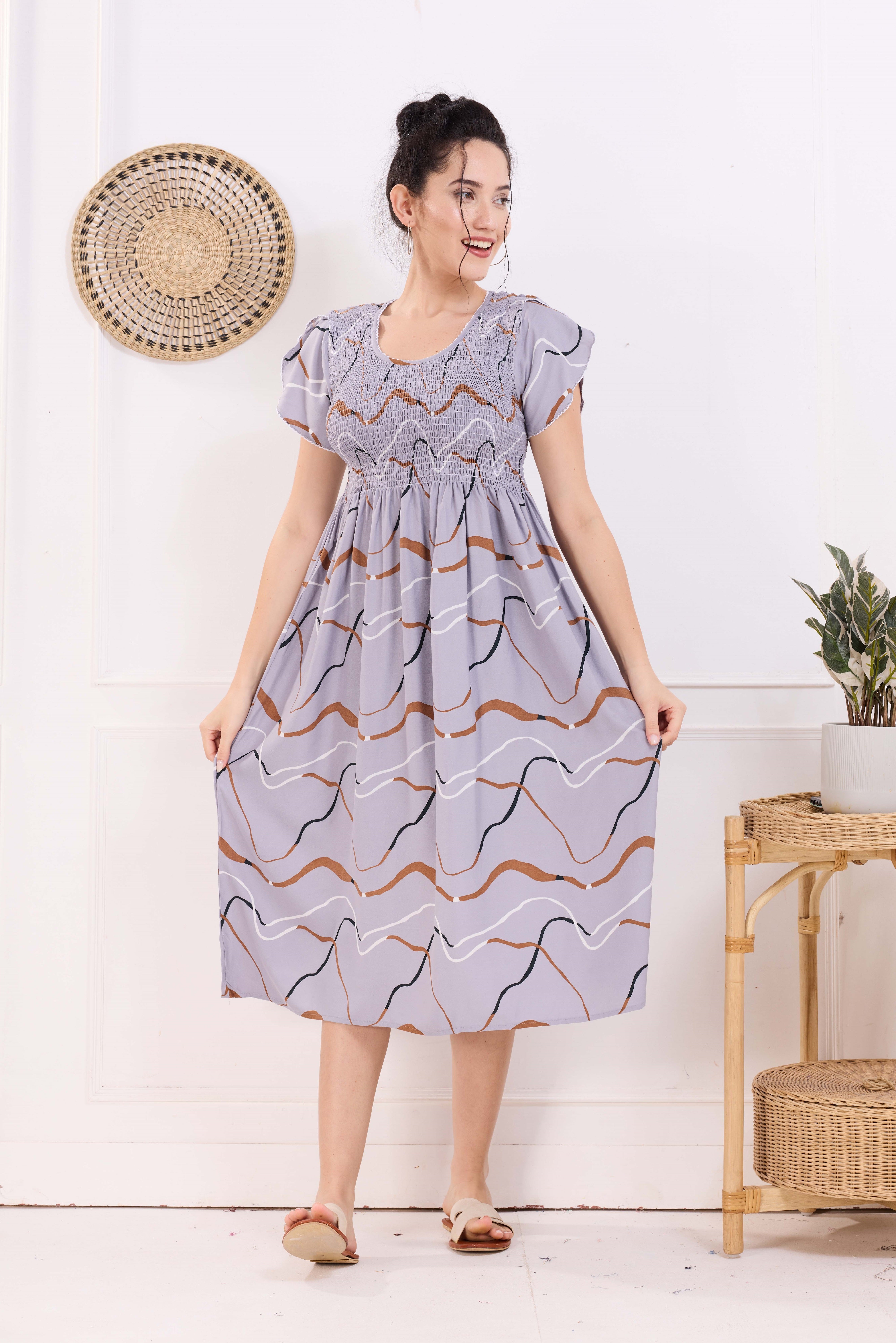 Experience ultimate comfort and style with the MANGAI Premium Rayon MAXI Frock Night Gown. Crafted from soft and smooth rayon fabric, this elegant piece features a stretchable smocking design for a perfect fit. The fancy pleated MAXI frock model adds a touch of flair, while the side pocket offers practicality. Designed with a round neck for timeless charm, this gown is ideal for stylish women who love both comfort and fashion.