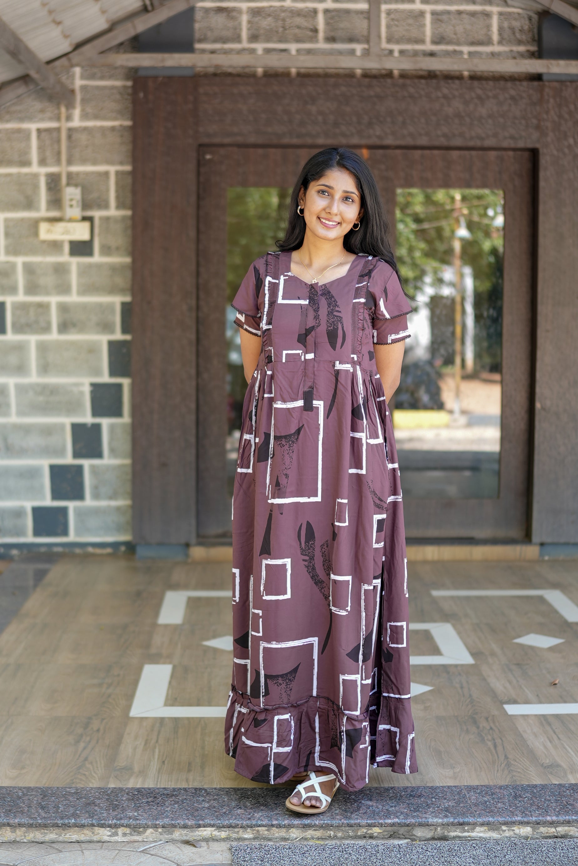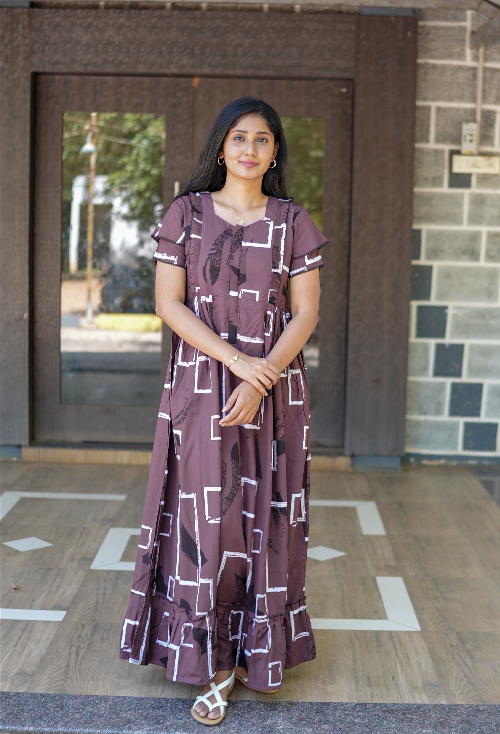 Stylish Frock Design: Flattering and comfortable for all stages of pregnancy.