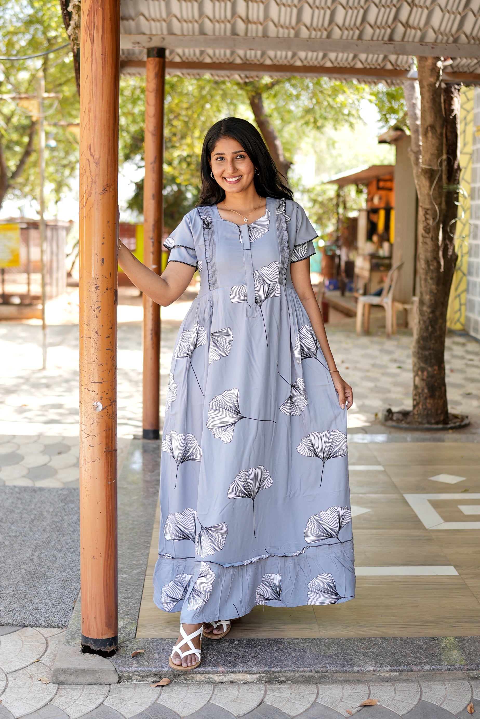 Stylish Frock Design: Flattering and comfortable for all stages of pregnancy.