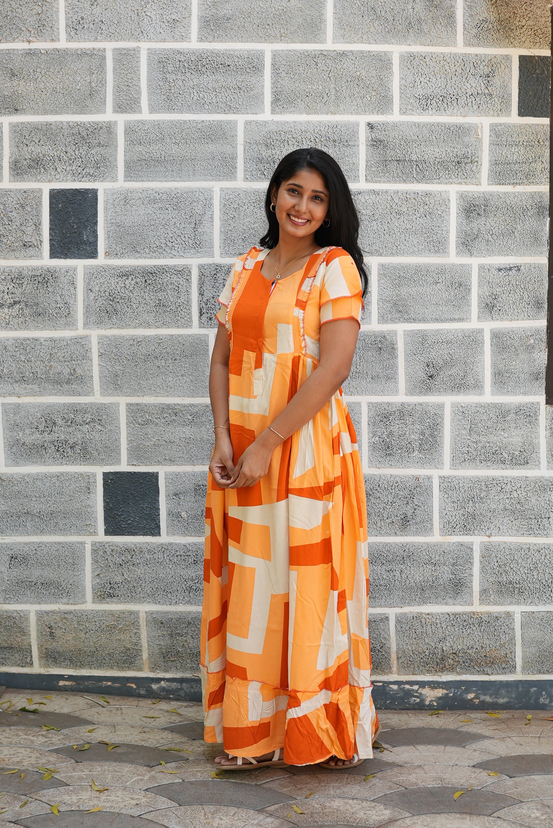 Stylish Frock Design: Flattering and comfortable for all stages of pregnancy.