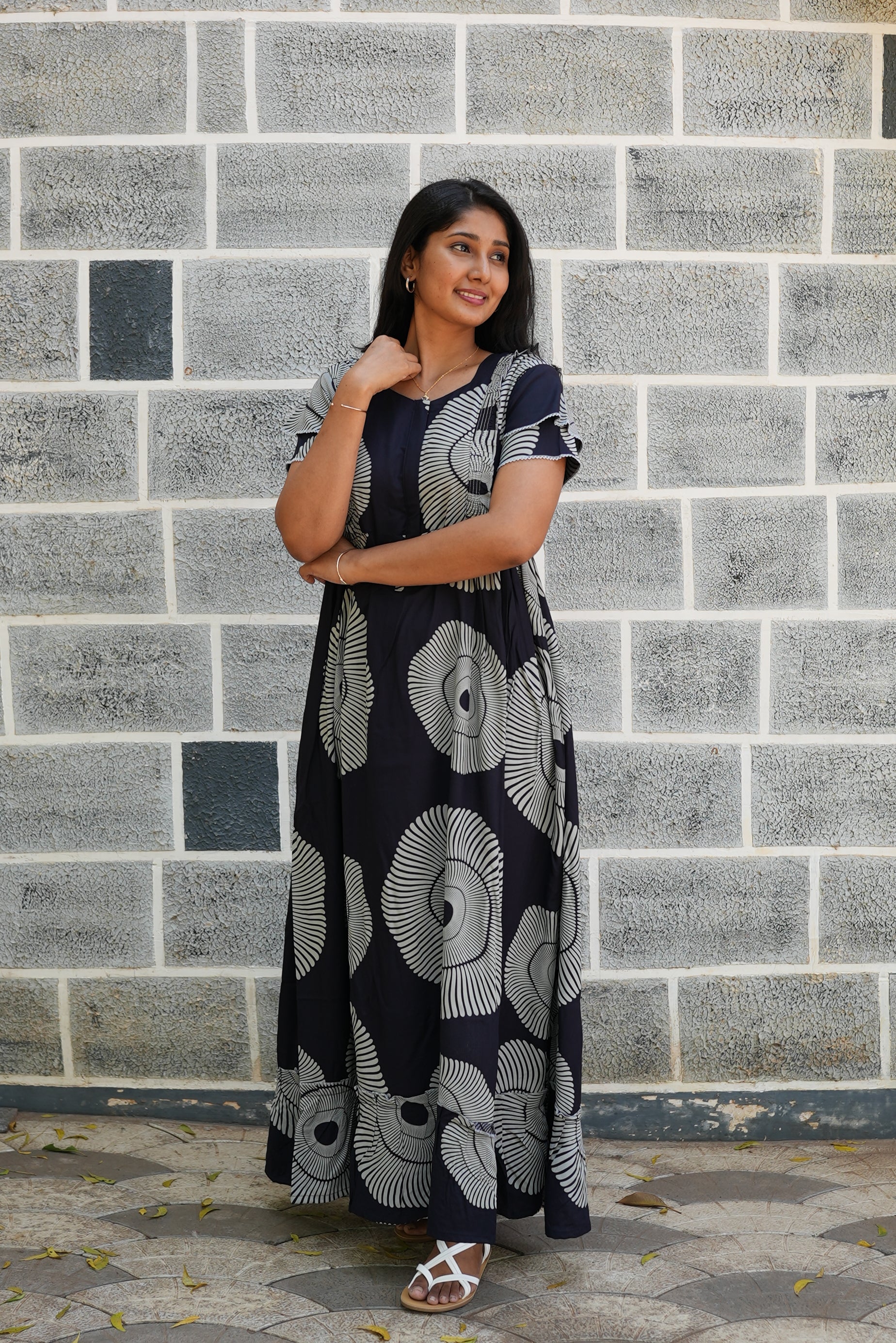 Upgrade your maternity wear with this stylish and functional Rayon Frock Nighty. Order yours today!