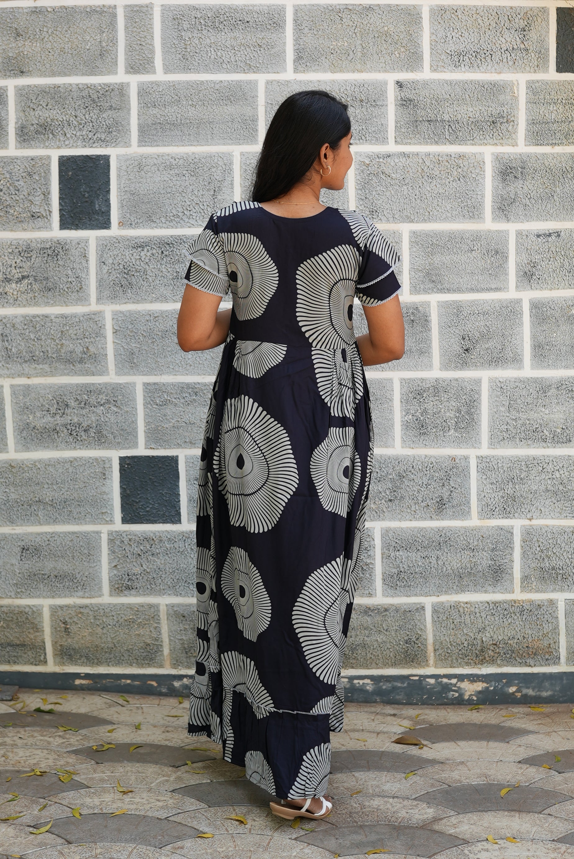 Stylish Frock Design: Flattering and comfortable for all stages of pregnancy.