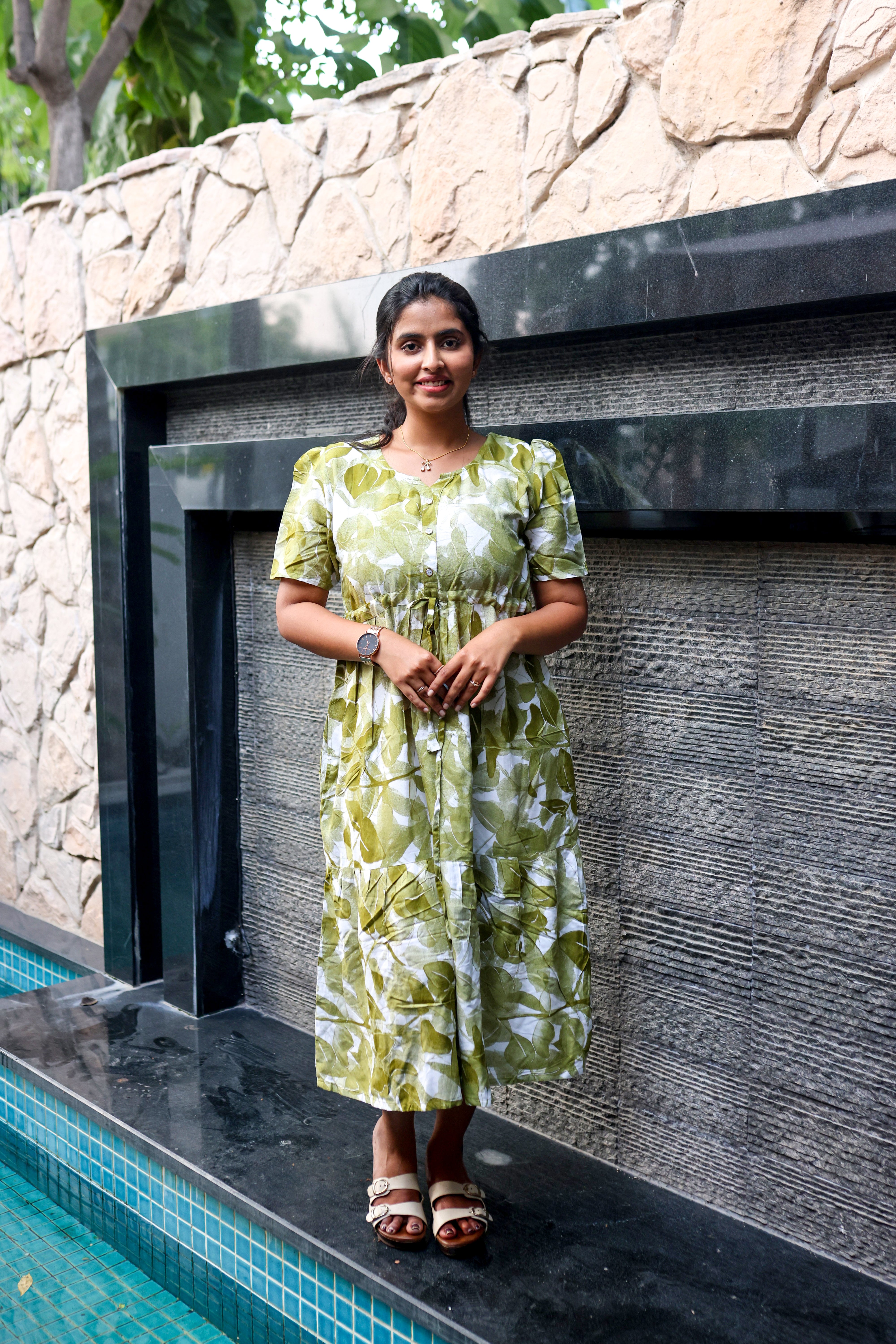 Rayon Colourful Foil Printing Gathering Frock Model Nighties | Side Pocket and Gathering Front Rope | Fancy Sleeve & Maxi Frock Nightwear for Stylish Women's (FGF)