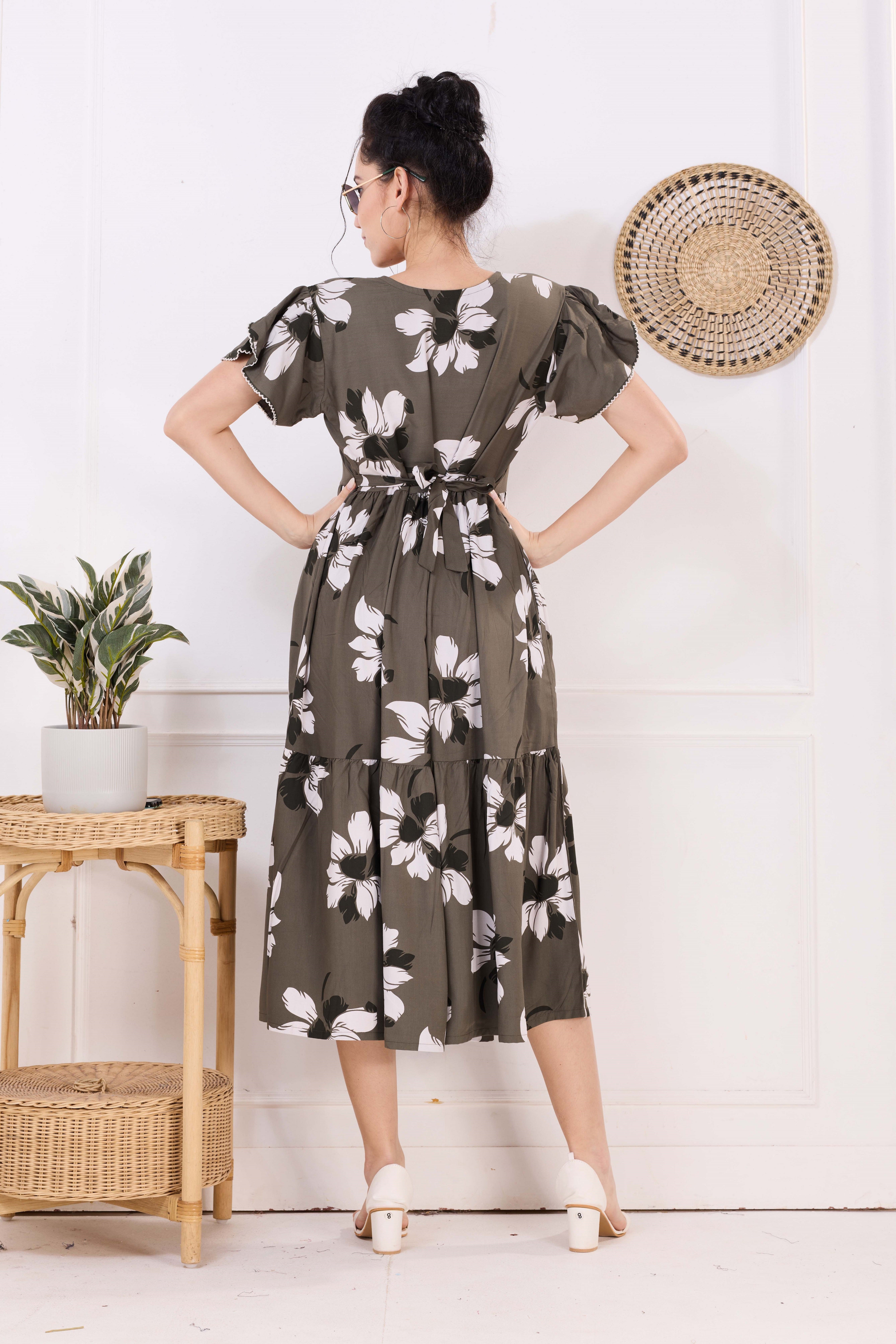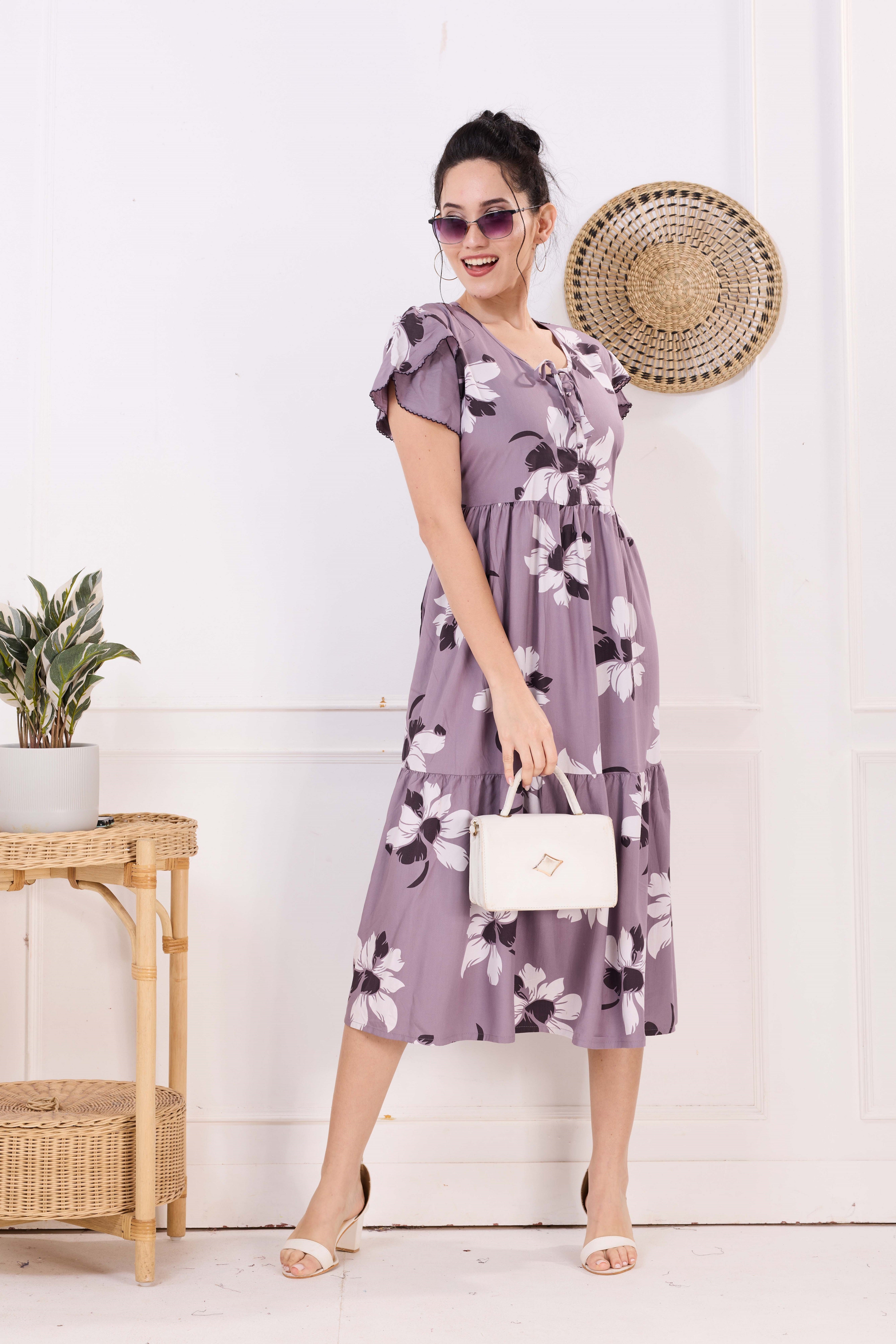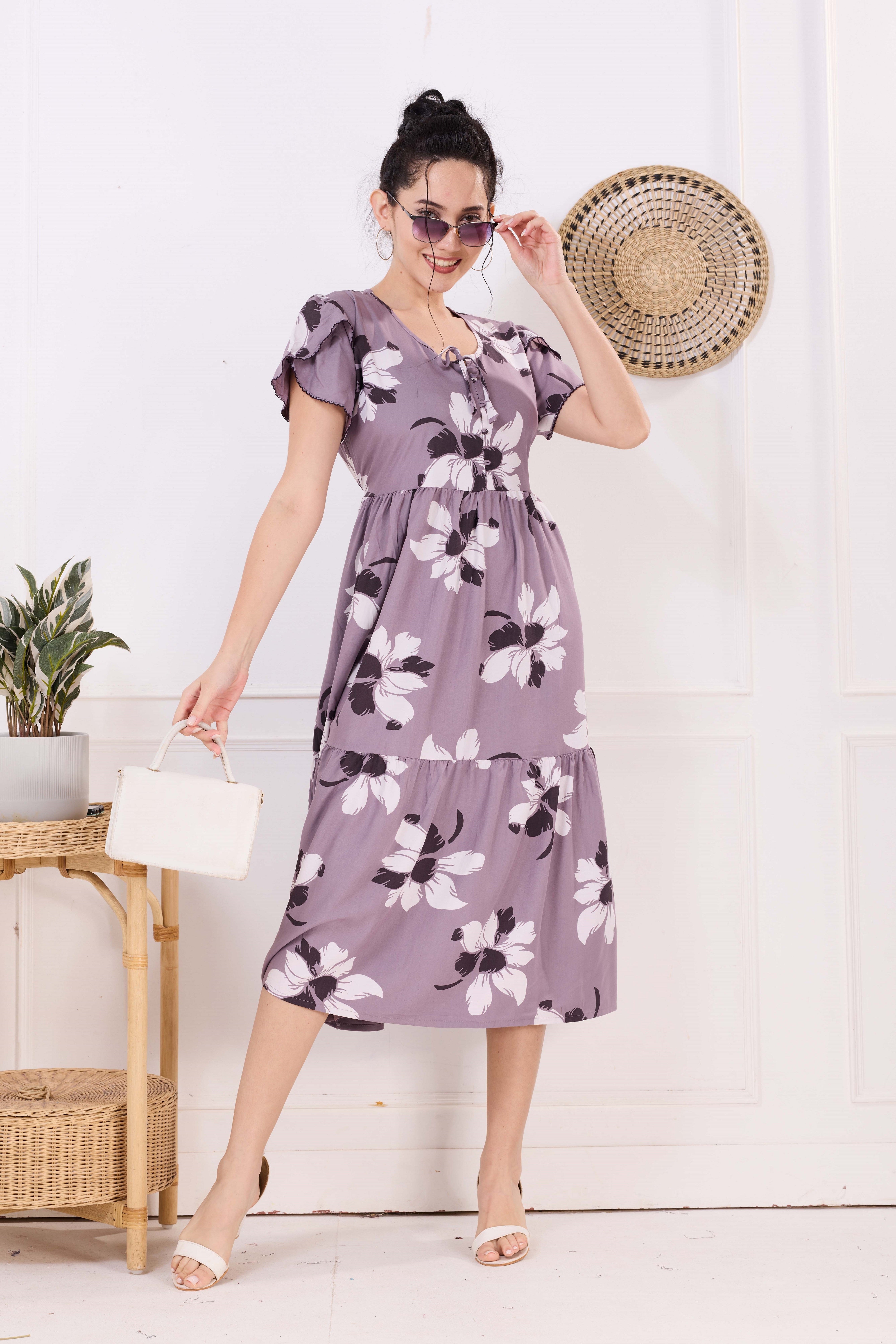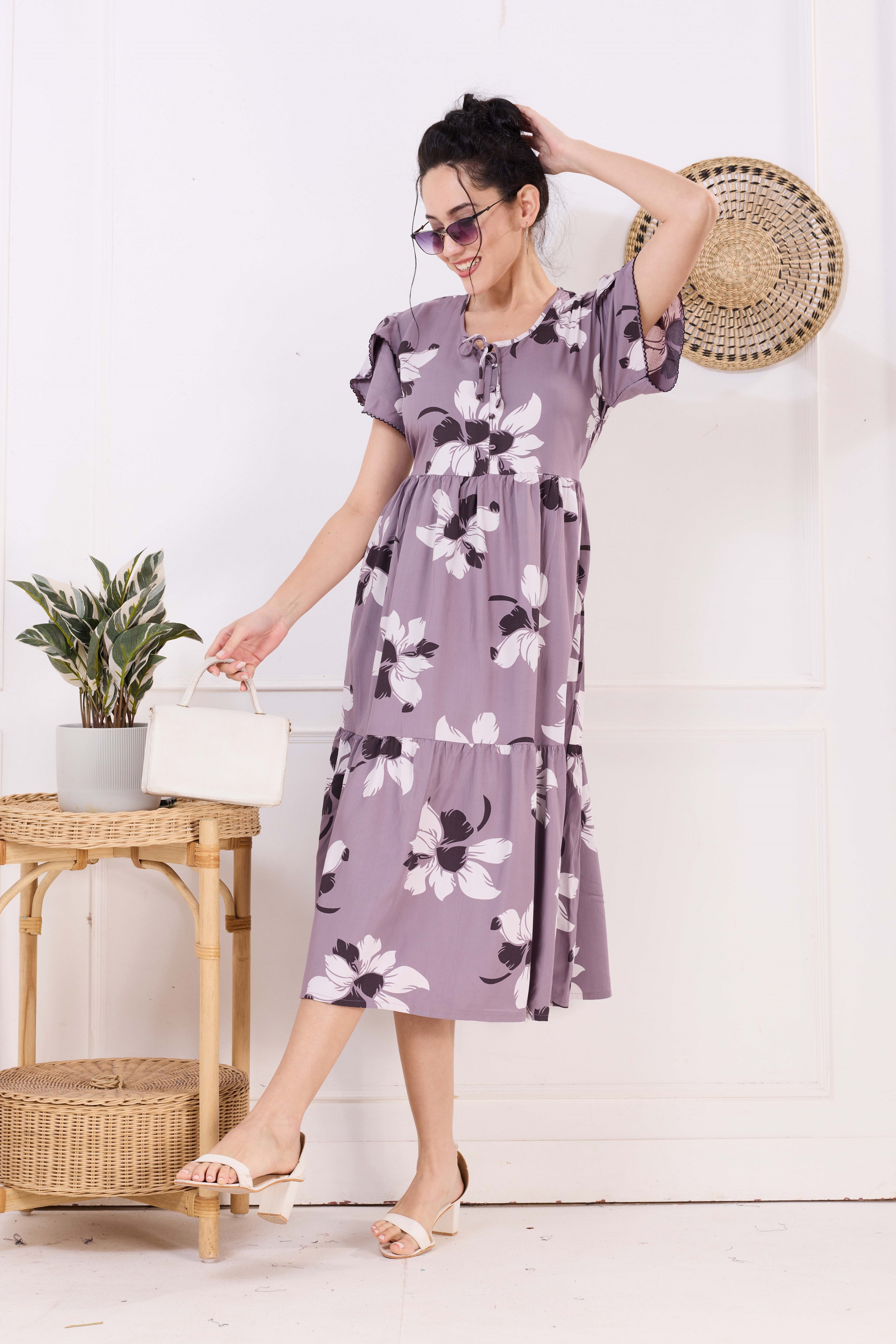 Rayon MAXI FROCK Model Nighties | Fancy Petal Sleeve | Fancy Neck & Side Pocket | Pleated Frock MAXI Style | Trendy Collection's for Stylish Women & Teenage Girl (FSF)