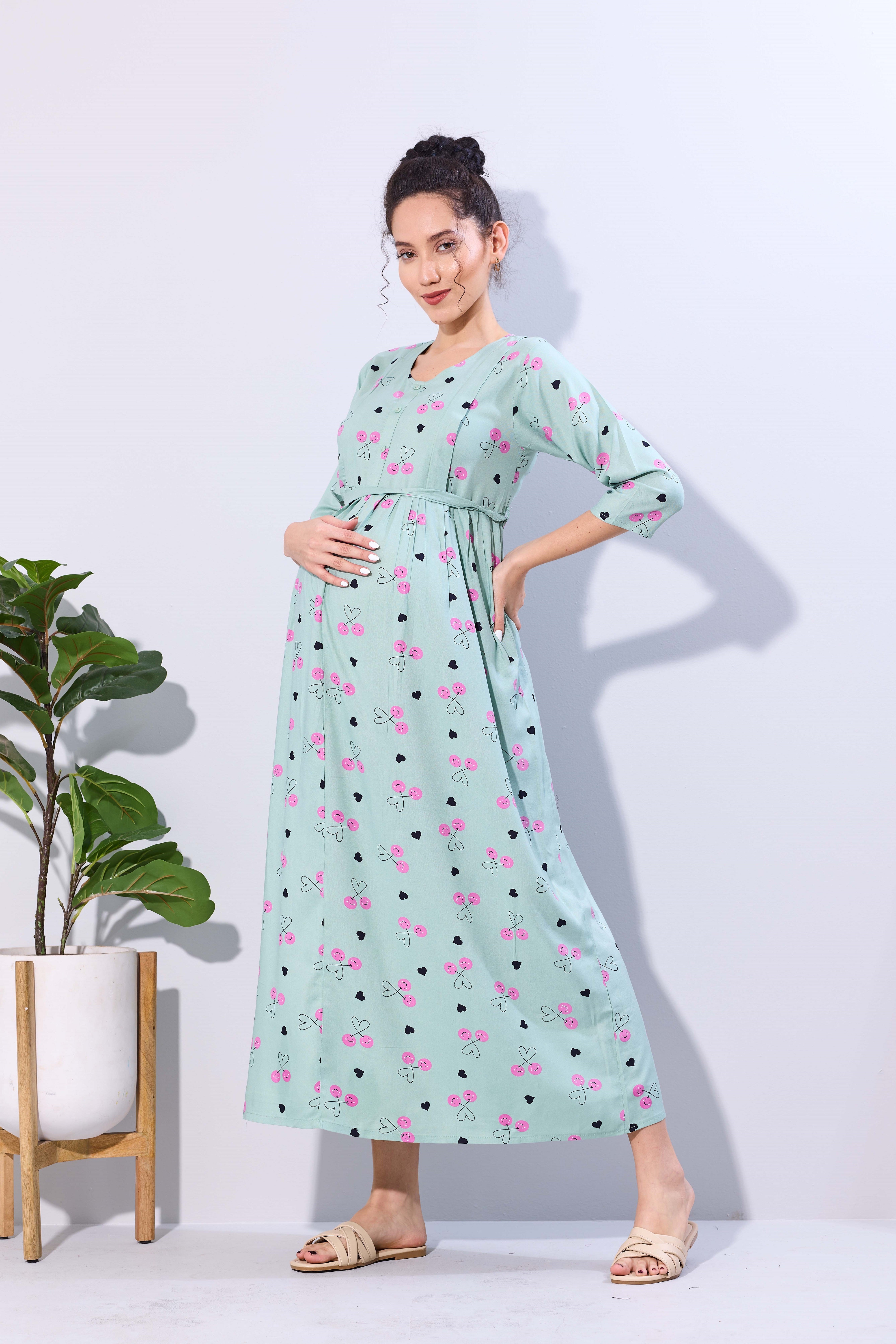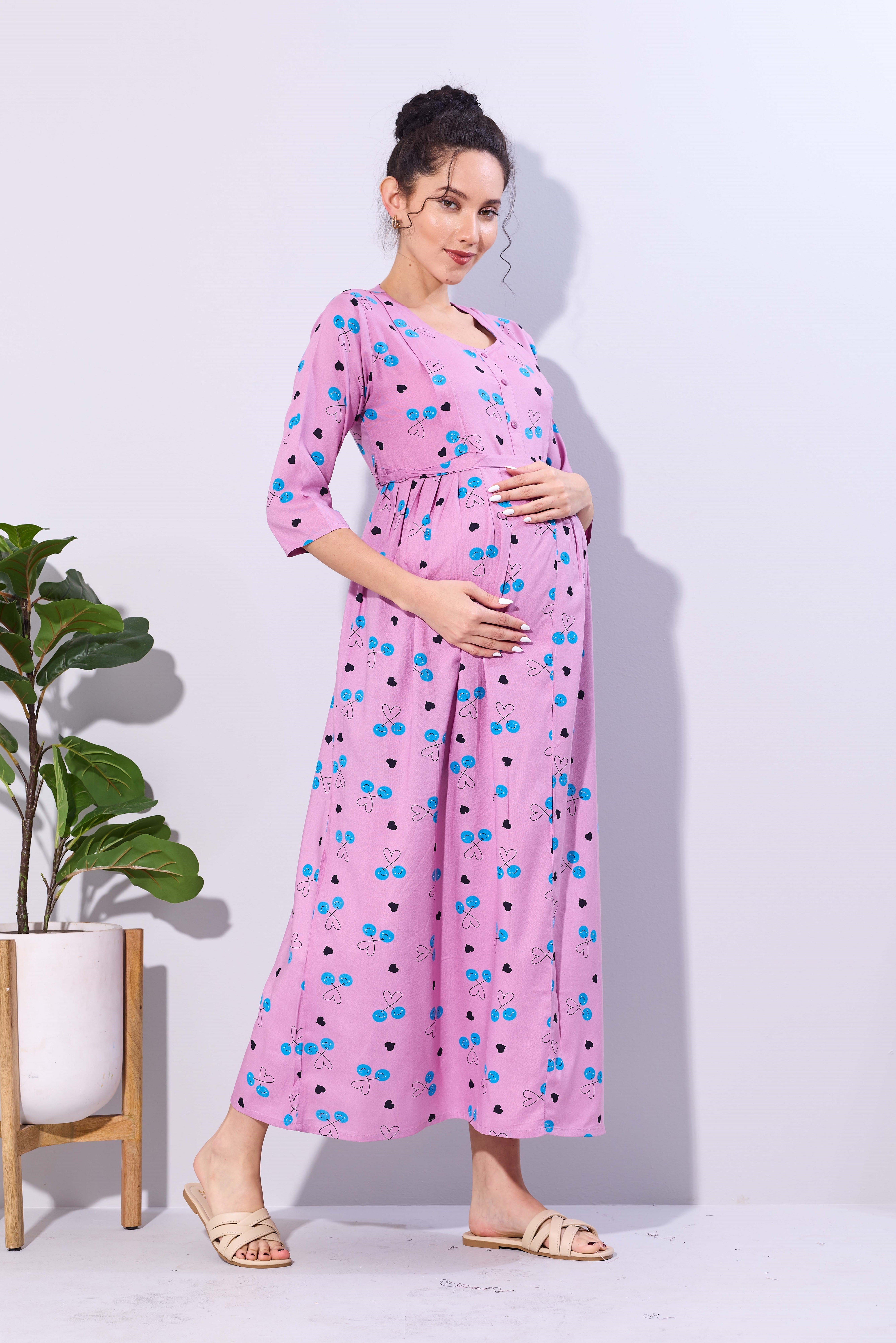 Soft Rayon4-IN-ONE Mom's Feeding & Casual Wear| Pre & Post Maternity Wear | Fancy Long Frock | Best Choice for Pregnancy Women (FIO-F)